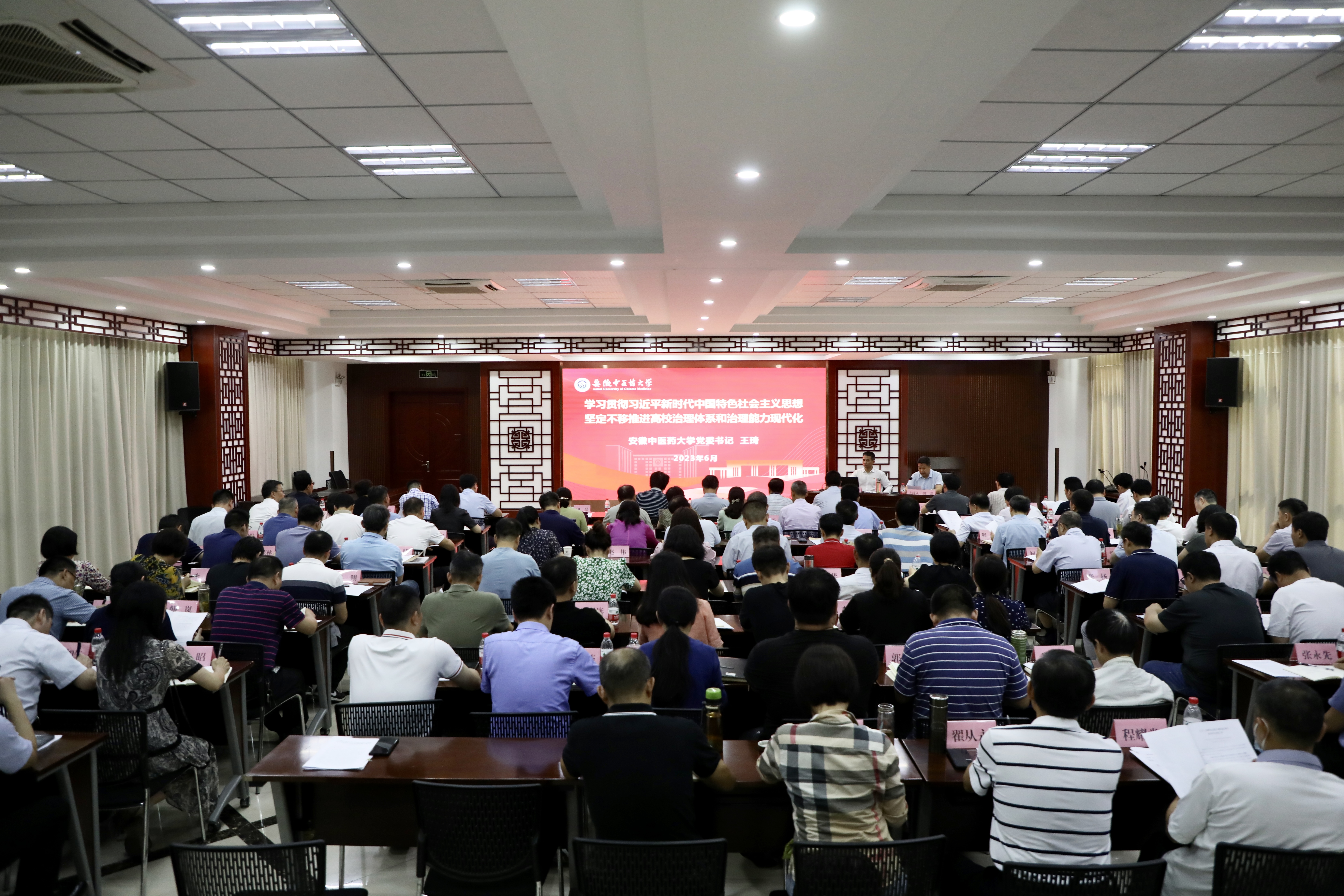 王琦从如何坚持党的领导在高校治理中的核心地位,如何理顺校院两级管理体制,如何发挥学术委员会、教(工)代会、学(团)代会、理事会在高校治理中的支撑作用,如何完善高校治理制度体系全面推进依法治校,如何按照现代高校治理要求配置资源,如何运用现代信息技术提升高校治理能力等六个方面进行了阐述。