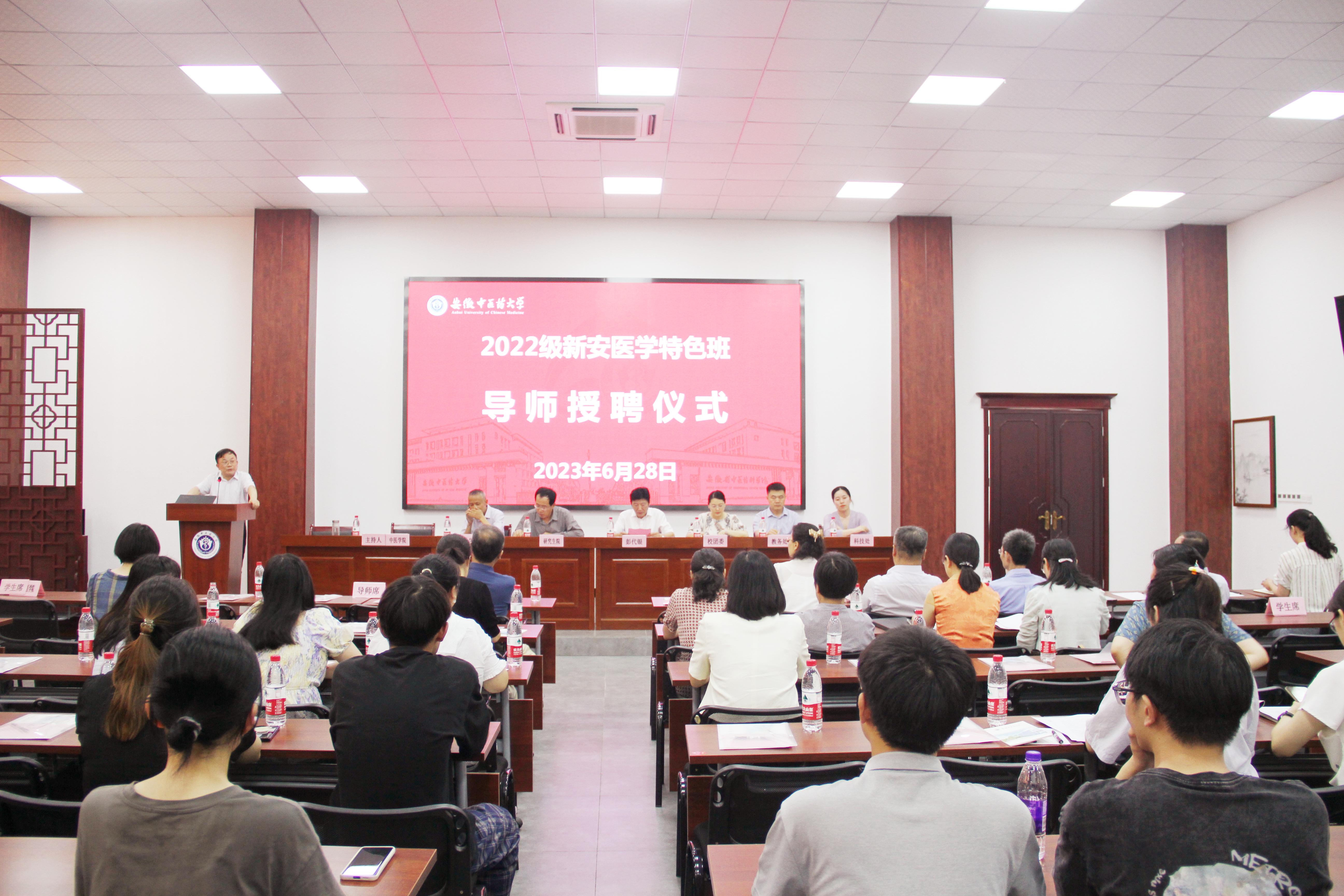 教务处副处长张晓军宣读《关于聘任2022级新安医学特色班导师的决定》文件,对新聘导师表示祝贺。安徽省教学名师吴元洁教授作为本届新安班导师代表发言,介绍新安医学的主要成就和学校新安班的办学特色,勉励同学们要坚定中医信念,做好新安医学的传承与发展。安晓云同学作为新安班学生代表发言,希望新安班的每一位同学都能在学校学院领导们的支持下和导师们的指导下,为新安医学的传承发展和中医学的普济众生贡献自己的一份力量。