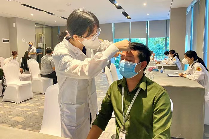 一年来,安徽队员高度注重当地医生的带教和培训,与柬埔寨、越南医师通过线下和线上,分享各自领域的发展、亮点、展望及困惑。并就中医药防治新冠、心血管重症、骨伤发展概况、中医骨伤、中风中医康复等展开讨论,深化中医药的对外交流。积极开展中医基础知识及相关适宜技术培训,今年3月,第二附属医院通过线上线下相结合的形式,举办“发展中国家针灸推拿高级人才研修班”,开展针灸适宜技术培训工作,全方位推广中国方案,努力为柬埔寨当地民众打造一支“带不走的医疗队”。