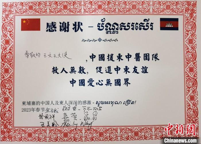 患者致信中国驻柬埔寨大使馆王文天大使,表达对中国首批中医援柬埔寨抗疫医疗队的感谢