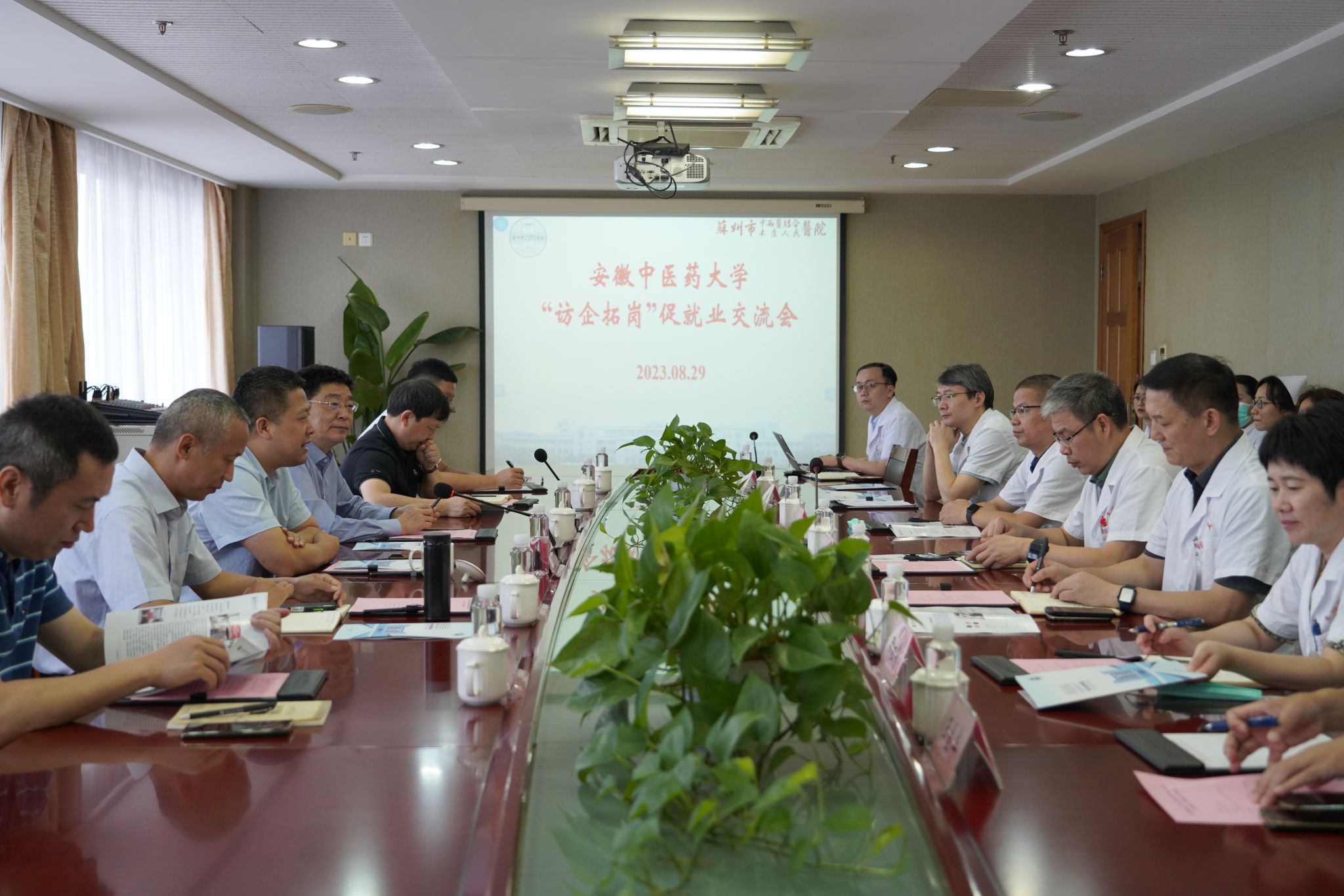 苏州市中西医结合医院党委书记杨文忠对安徽中医药大学一行的到来表示欢迎及感谢,他表示随着中国中医科学院大学落户苏州吴中,医院将开启新的发展,也将为中医药人才的培养与发展提供更加广阔的空间与平台。医院院长钱建学详细介绍了医院一院两区的规划,他指出在目前良好政策激励下,医院正有计划的推进三级甲等医院的建设工作,在这过程中希望能得到学校的支持,填补医院硕士学位点工作的空白,引进中医药优秀人才进一步提升医疗和护理质量。