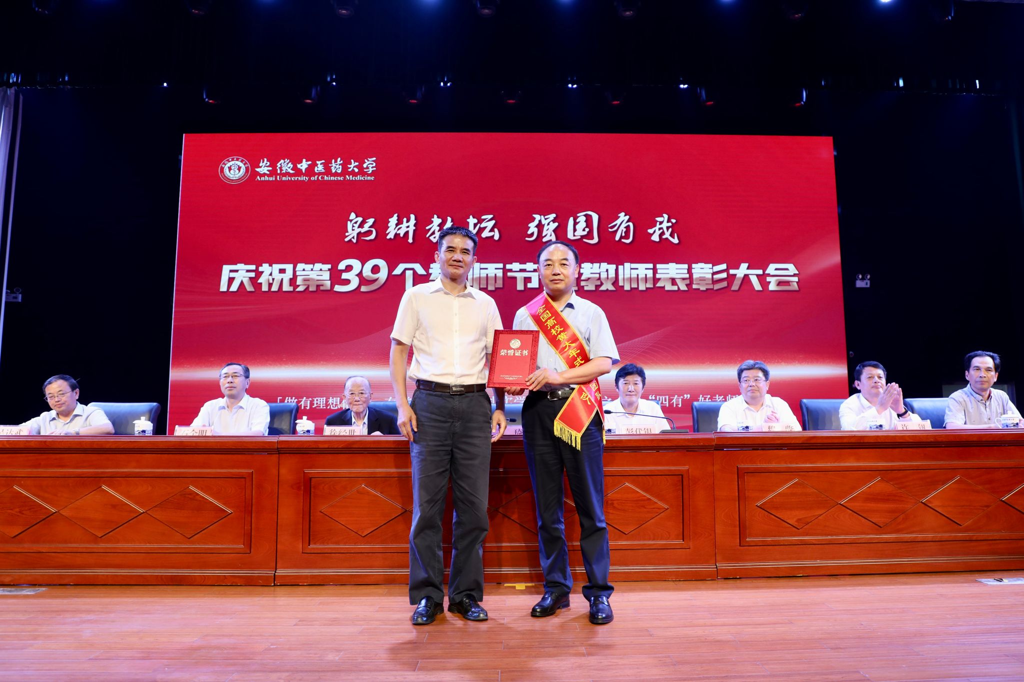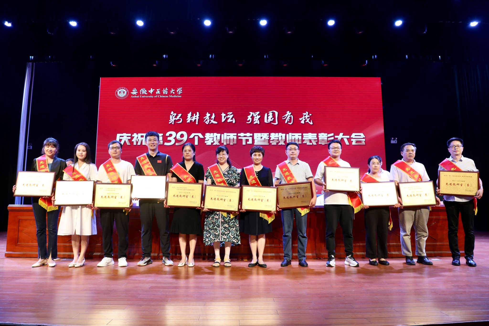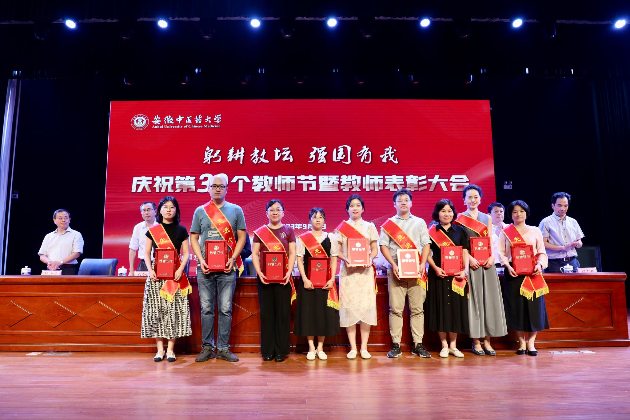 王琦代表学校党委、行政向不辞辛劳、默默耕耘在教学、科研、医疗、管理服务第一线的广大教职医护员工表示衷心感谢,向多年来一直支持学校改革、建设与发展的全校离退休老教师、老同志致以崇高敬意,向获得各级表彰的先进集体、先进个人、优秀教师表示诚挚祝贺。他表示,两年来教师队伍结构持续优化,涌现出一大批优秀的教师代表,人才引进取得重大突破,以教师为主体的理念深入人心,教师队伍建设成效斐然。他向全体教职医护员工提出三点希望:要爱党和国家,坚定理想信念,自觉做中国特色社会主义事业坚定的信仰者和忠实的实践者;要爱学校,树立大局意识、主人翁意识和平台归属意识;要爱事业,落实立德树人根本任务,不忘初心、拉高标杆、潜心钻研。他强调,当前中医药发展迎来前所未有的大好机遇,相信在大家的共同努力下,学校“振兴中医药,建设‘双一流’”的目标一定能够实现,用实际行动助力现代化美好安徽建设。