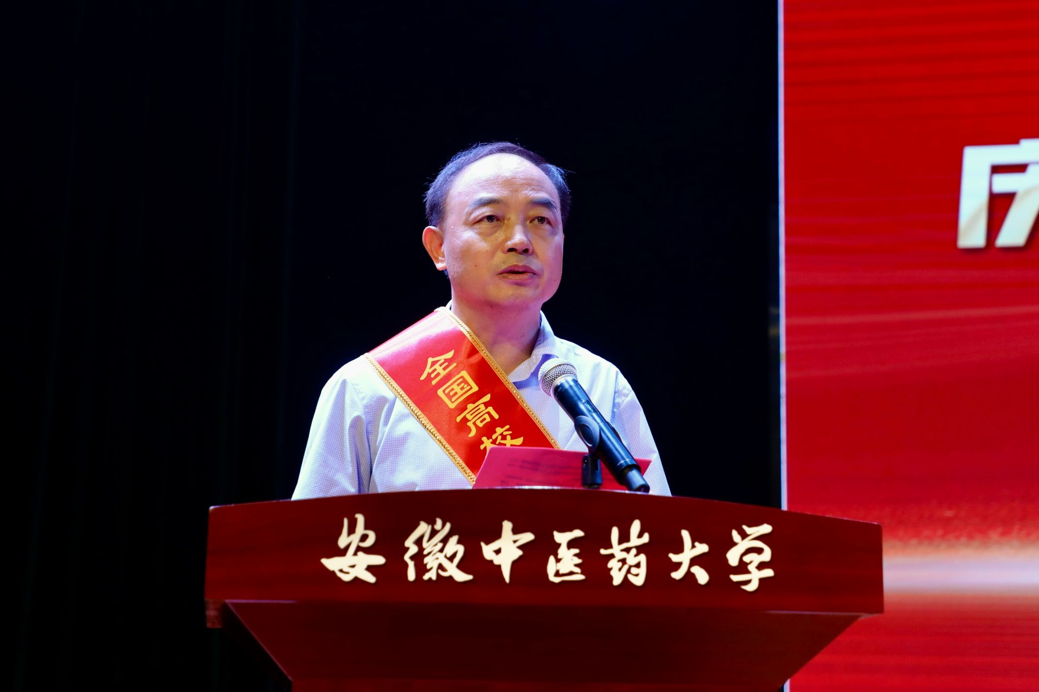 第三批“全国高校黄大年式教师团队”我校中西医结合临床教师团队负责人杨文明、第四届安徽省最美教师杨青山在会上发言。他们表示,将继续坚持为党育人、为国育才的初心使命,勇挑重担、勇往直前,努力为促进中医药高质量发展,争创“双一流”大学贡献应有力量。