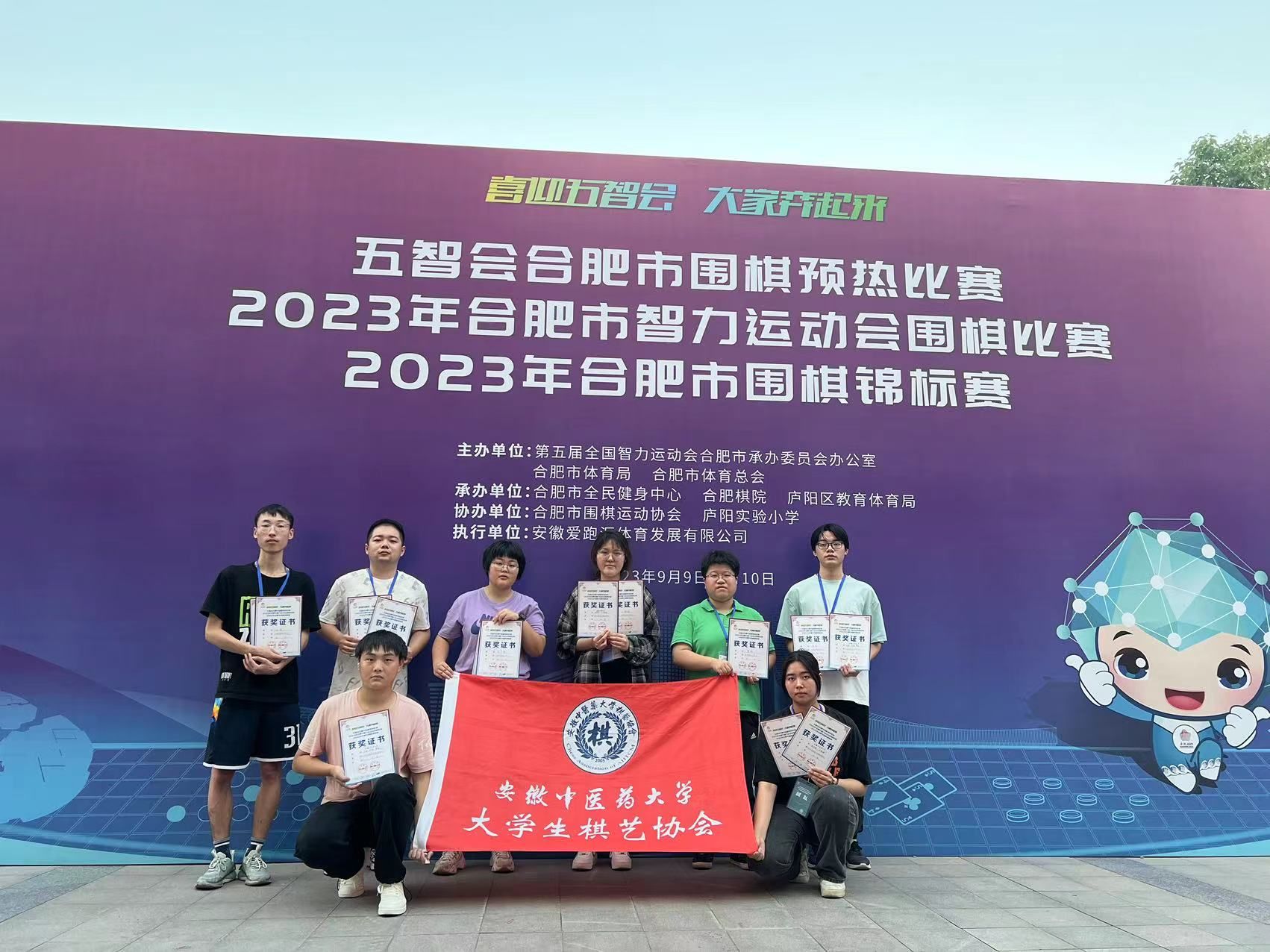 9月9日至10日,合肥市围棋锦标赛落幕。由校团委、大学生棋艺协会推选出的6名师生,均在本次竞赛中取得佳绩。曹姝老师获得女子公开组第一名;王瑞婕、高宇程分别获得女子大学生组第一名、第二名;孙度、李昊宜、吴亮分别获得男子大学生组第二名、第三名、第六名;学校获大学生组总团体第一名,大学生组女子、男子团体第一名的成绩。