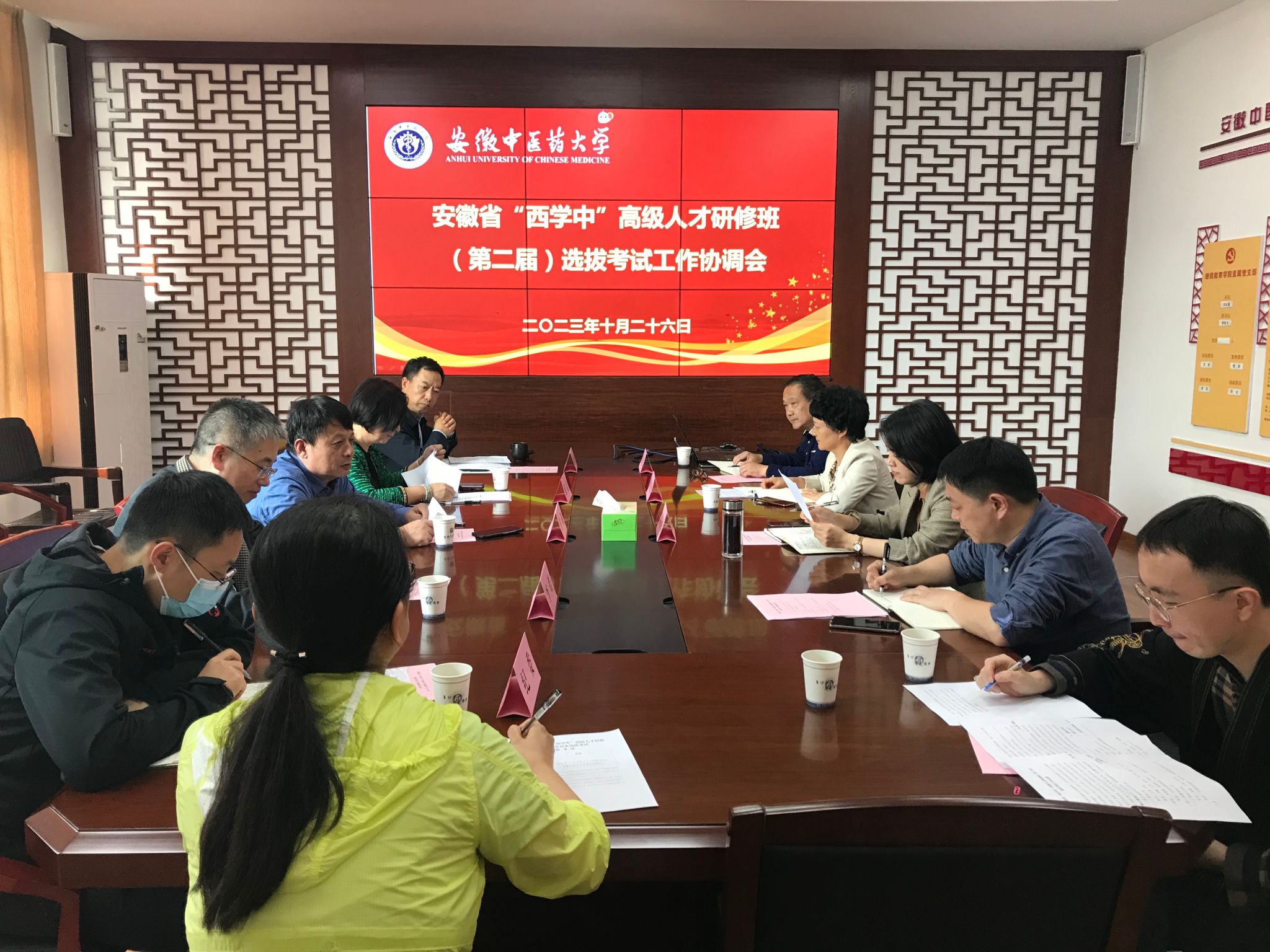 10月26日下午,安徽省“西学中”高级人才研修班选拔考试工作协调会在继续教育学院会议室召开。副校长许钒、省卫生健康委中医药发展处处长李皓、一级调研员张洁出席会议,学校纪委办、教务处、财务处、总务处、保卫处、继续教育学院等部门负责人参加会议。许钒主持会议。