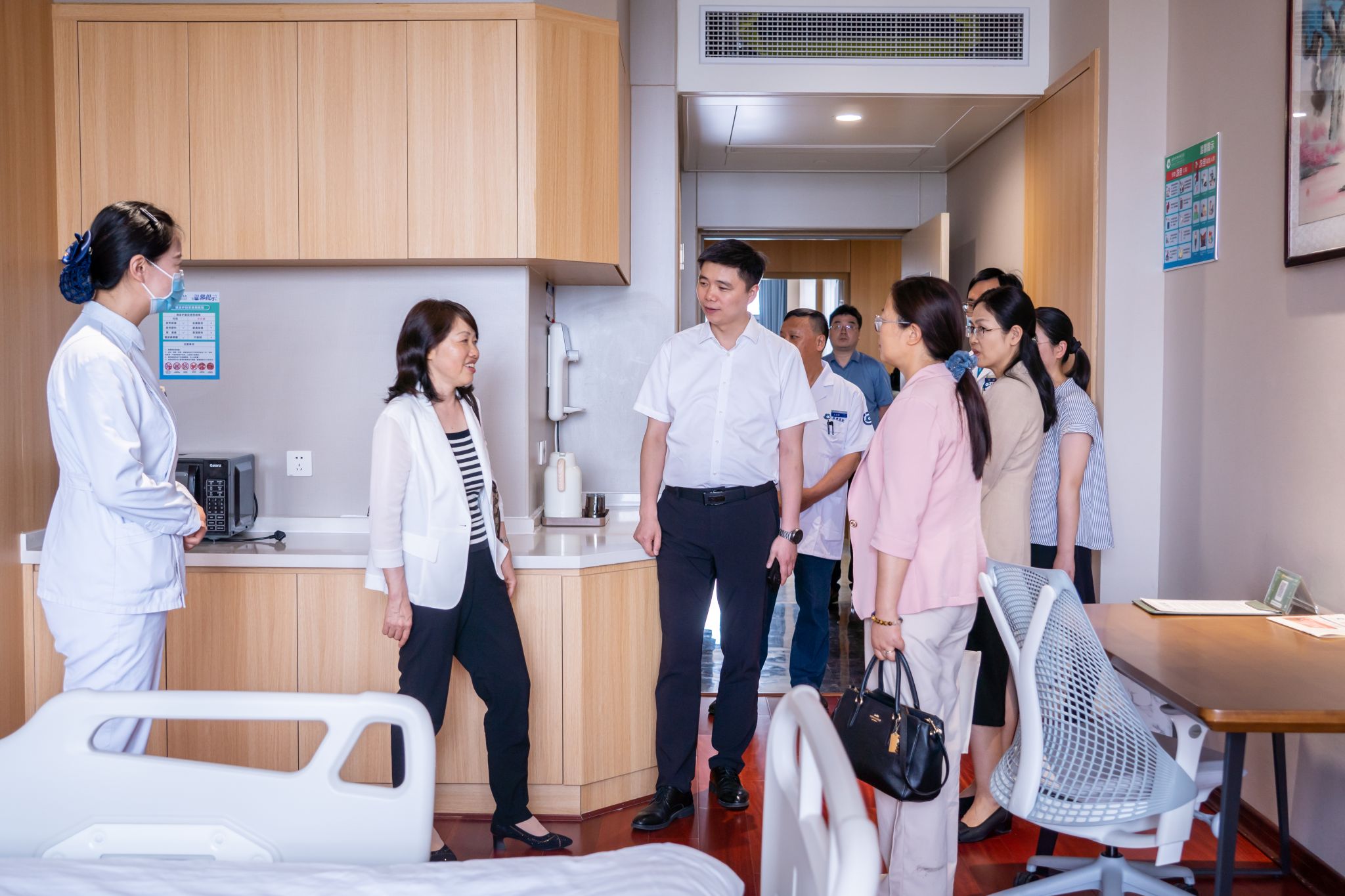 桂双英一行实地参观了医院的肿瘤筛查中心、贵宾医疗中心、中医综合治疗区以及重点科室病区等地,深入了解医院的科室建设、医疗设备配置、诊疗服务流程、人才培养体系等情况,全方位感受医院的运营和发展现状。