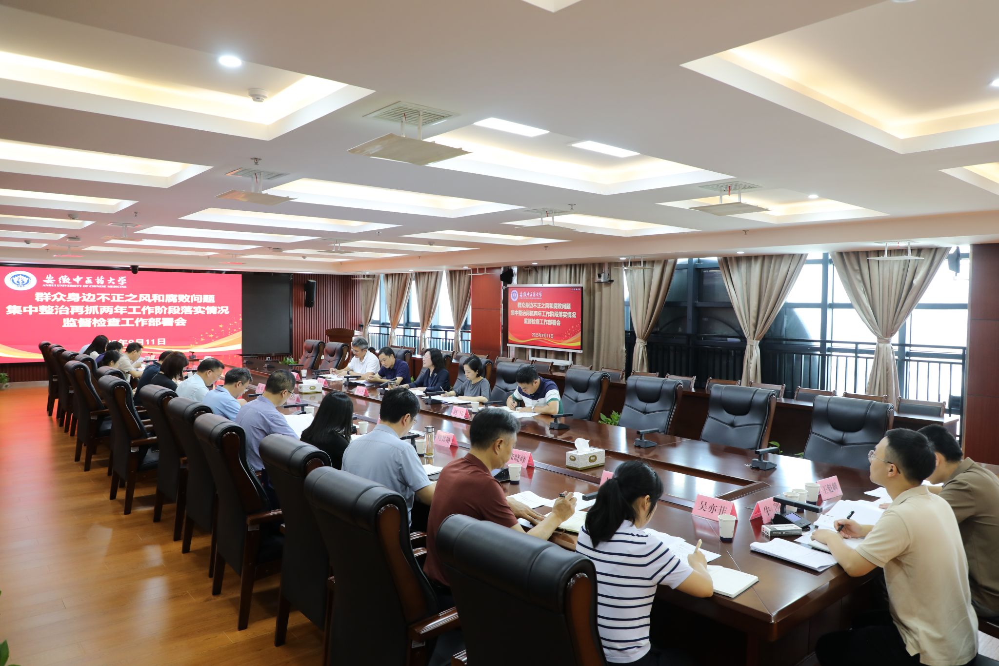 9月11日上午,学校召开群众身边不正之风和腐败问题集中整治再抓两年阶段落实情况监督检查工作部署会,相关职能部门主要负责同志、三所附属医院纪委有关负责同志以及督查组全体成员参加会议。会议由校党委常委、纪委书记、监察专员詹灵杰主持。