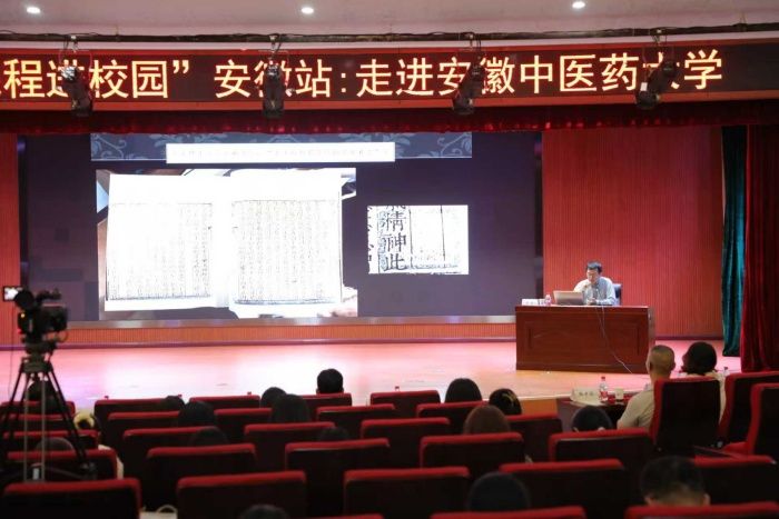 近日,由国家图书馆(国家古籍保护中心)、安徽省图书馆(安徽省古籍保护中心)主办,安徽中医药大学图书馆和团委共同承办的“古籍保护课程进校园”活动圆满举行,学校领导及师生代表共计200余人参加了本次活动。安徽中医药大学党委常委、副校长聂久胜、安徽省古籍保护中心主任、安徽省图书馆党委书记、馆长左金刚,以及安徽大学、安徽师范大学、合肥师范学院等兄弟院校专家共同出席本次活动。