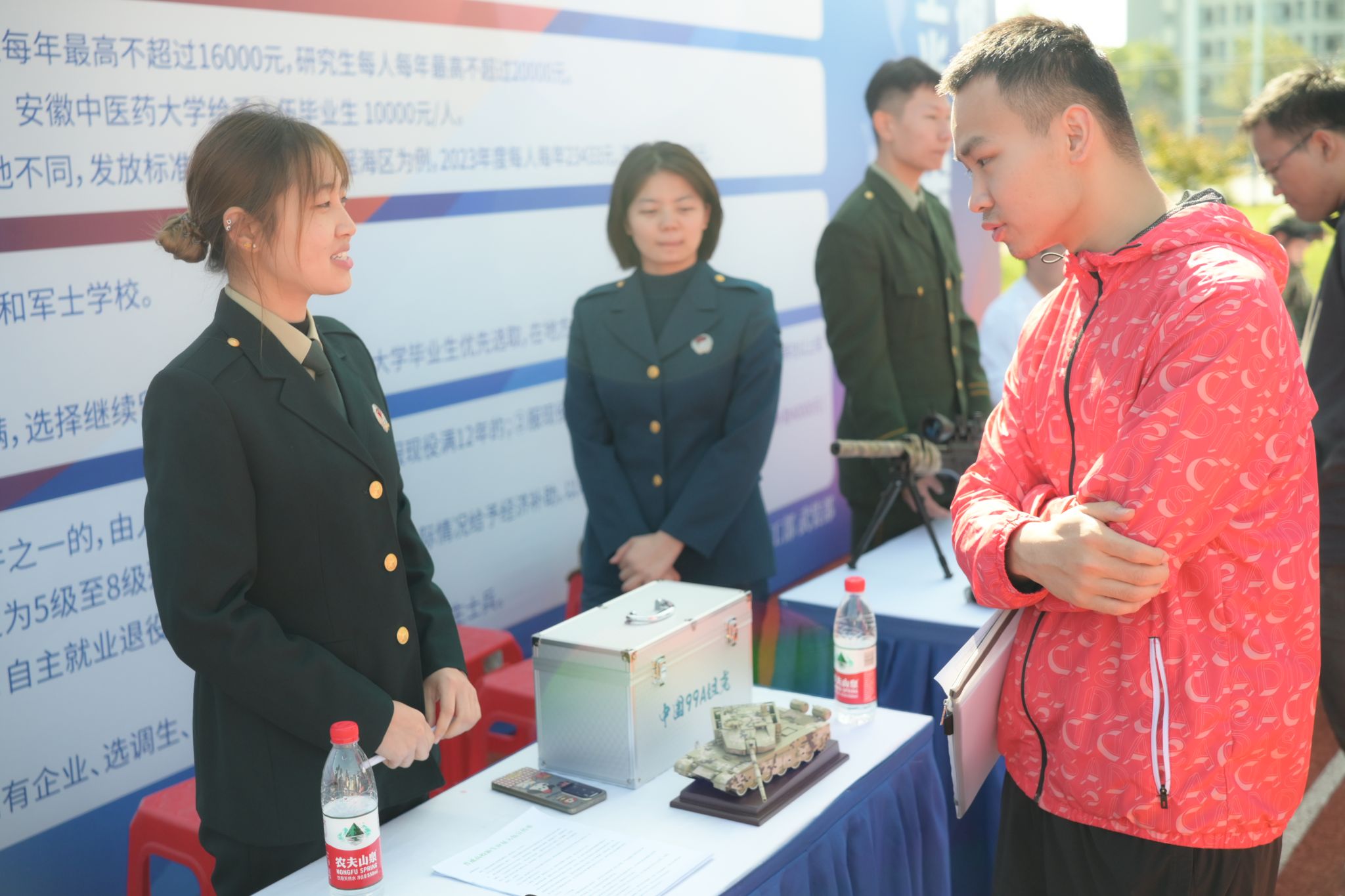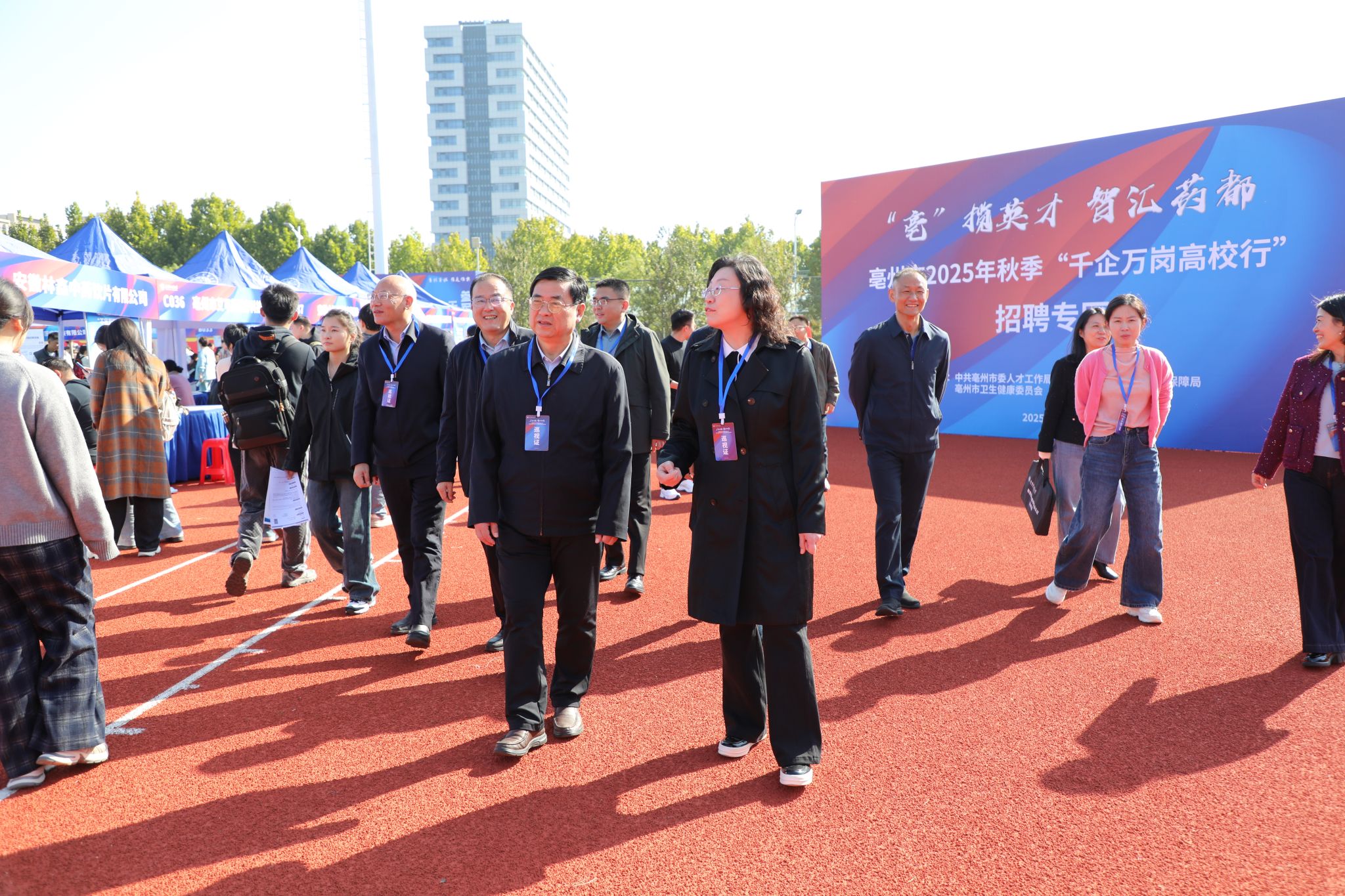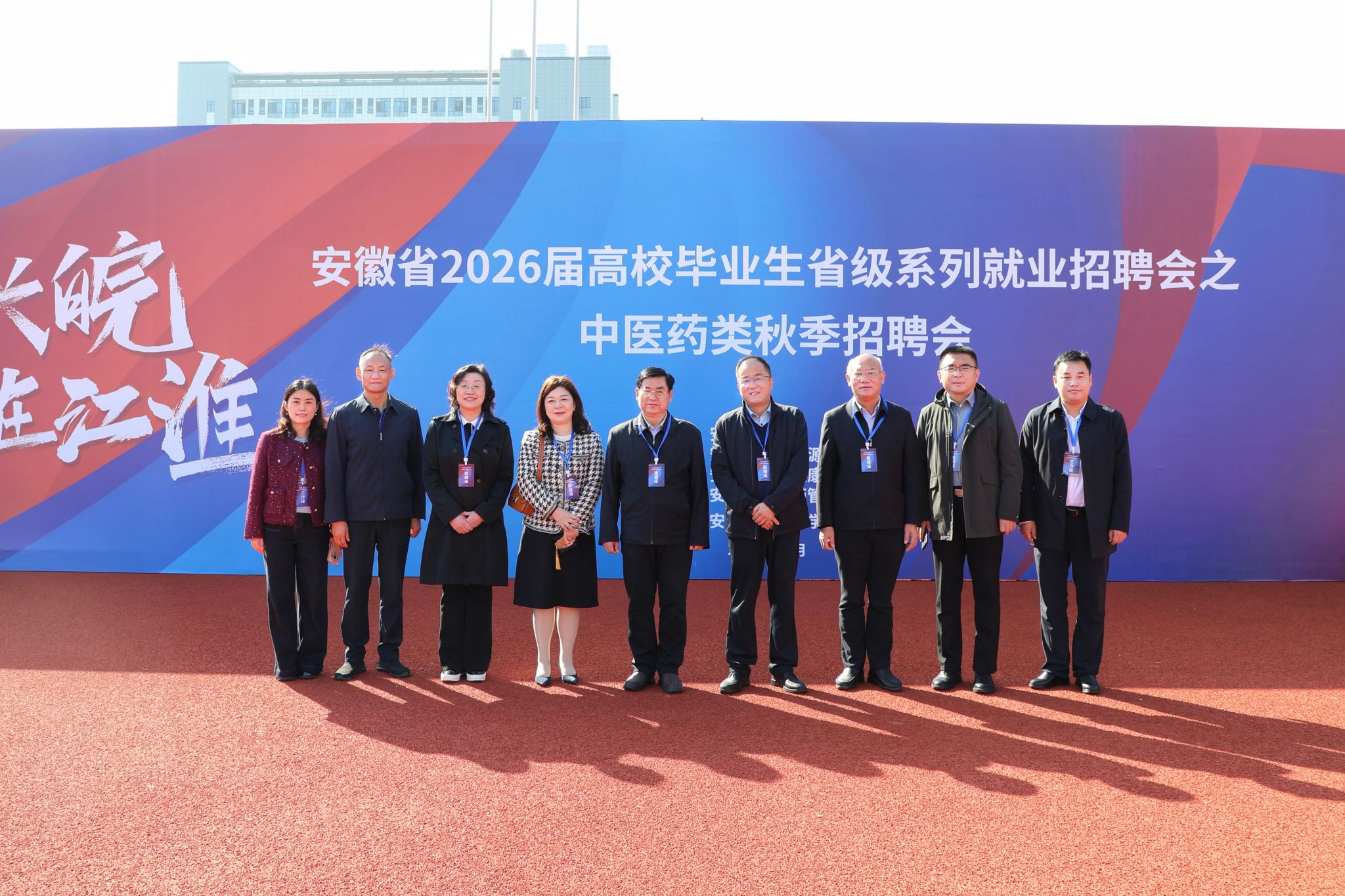 10月24日,由安徽省教育厅、安徽省人力资源和社会保障厅、安徽省卫生健康委员会及安徽省中医药管理局主办的——“人才兴皖 ‘就’在江淮”安徽省2026届高校毕业生省级系列就业招聘会之中医药类秋季招聘会在我校举办,校党委书记谢瑞瑾,党委副书记周新发,党委常委、纪委书记、监察专员詹灵杰,党委常委冯祥及省人社厅相关处室领导亲临现场指导工作,与用人单位和毕业生亲切交流。各学院党政领导班子及毕业班辅导员全程参与。