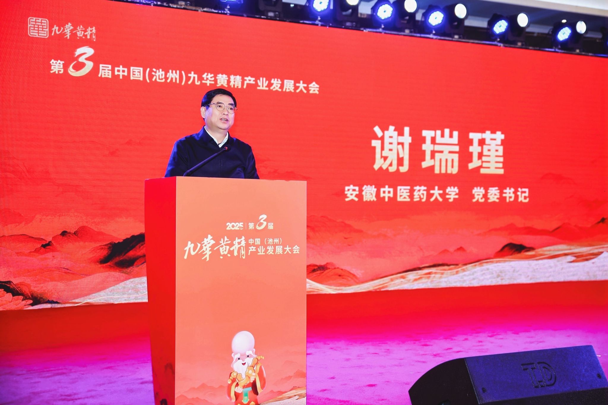 谢瑞瑾在致辞中强调,九华黄精作为安徽省道地药材的杰出代表,不仅是池州一张鲜明的特色名片,更是安徽中医药高质量发展的生动实践。他希望各方以本次大会为契机,深化产学研用融合,加快成果转化与应用推广,持续提升九华黄精产业的核心竞争力和市场影响力,共同将其打造成为辐射全国、走向世界的健康品牌。