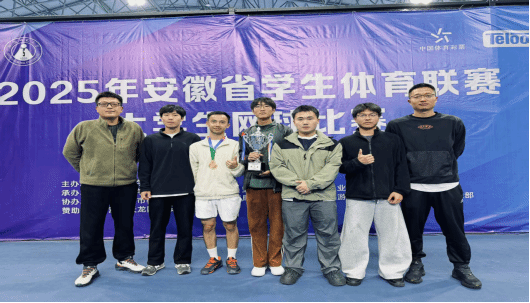 2025年安徽省学生体育联赛大学生网球比赛于10月27日-11月3日在安徽省马鞍山市举办。我校网球代表队在赛场上奋勇拼搏、锐意进取,最终收获男子甲组单打冠军,男子团体亚军,男女混合双打第五名的优异成绩,充分展现了安中学子昂扬向上的体育风貌。