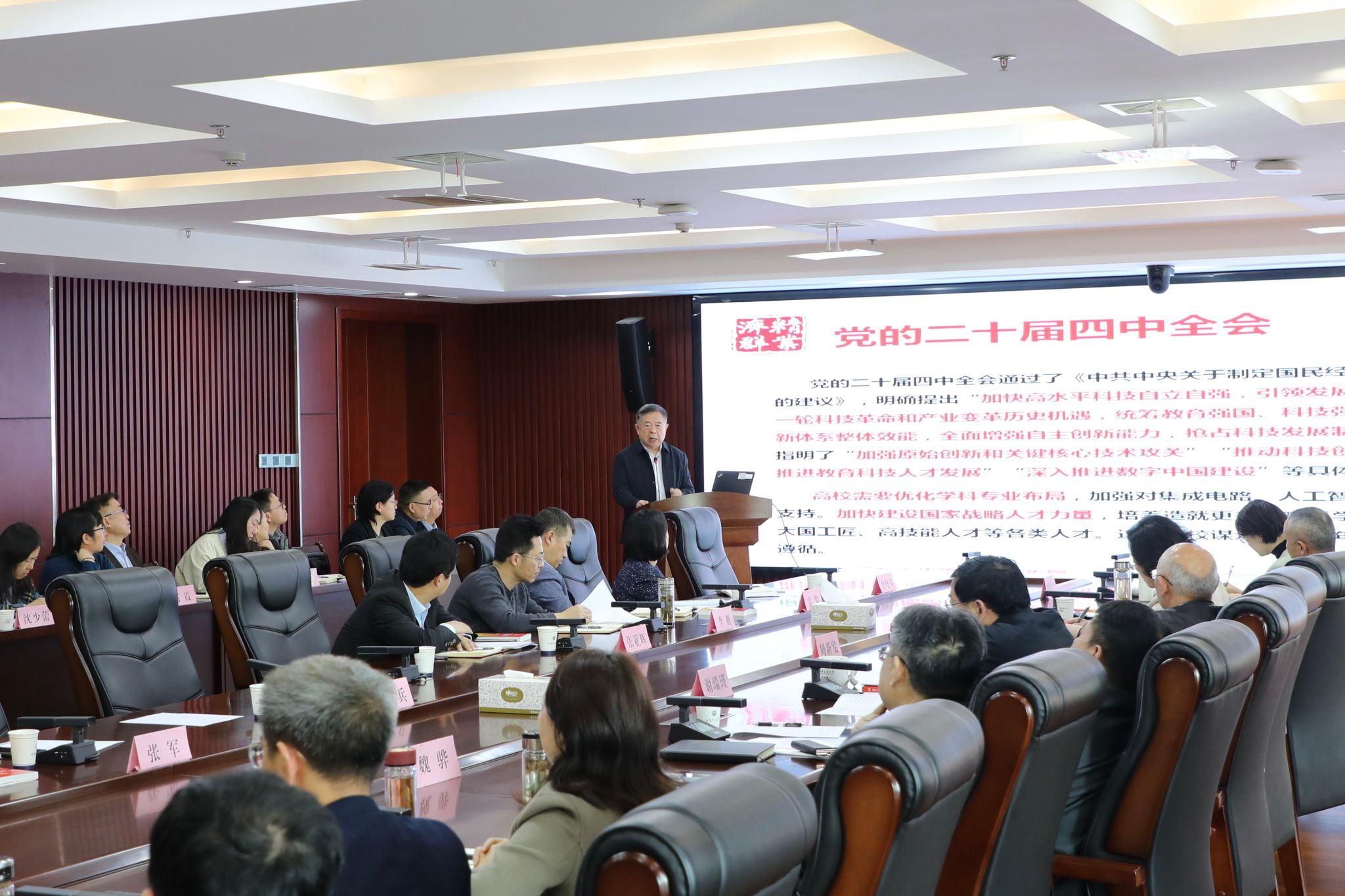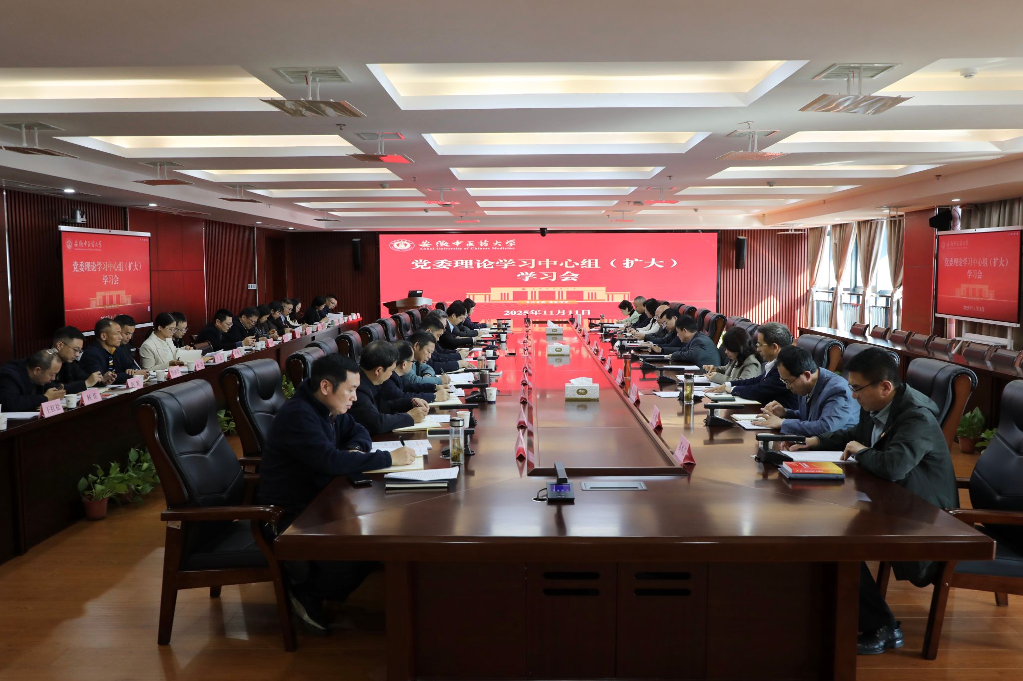 11月11日下午,学校举办党委理论学习中心组(扩大)学习会,专题学习党的二十届四中全会精神,校领导谢瑞瑾、许钒、周新发、魏骅、桂双英、詹灵杰,校党委常委董玉节、冯祥,有关职能部门负责同志、各二级党组织书记及药学院领导班子成员参加学习会。