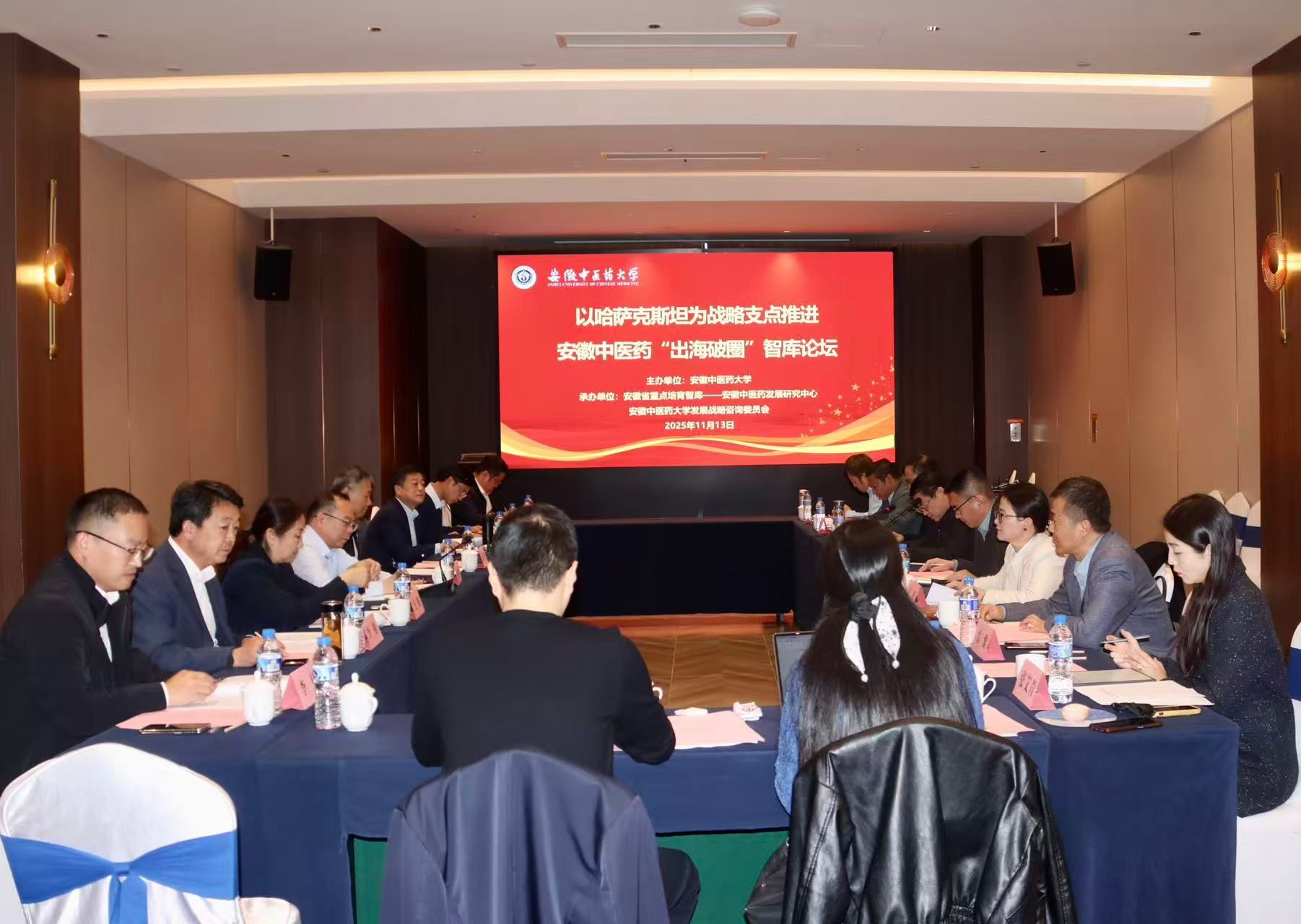 11月13日下午,学校召开“以哈萨克斯坦为战略支点 推进安徽中医药‘出海破圈’”智库论坛。省政协教科卫体委员会副主任田希伟,省政府参事室党组成员、副主任梁冰,省外事办经济服务处处长李红洲,省政府参事室副馆长、一级调研员方略,学校党委书记谢瑞瑾,省中医药管理局、亳州市政府、黄山市卫生健康委、济人药业,学校党政办公室、发展改革处、外事办、第一附属医院、第二附属医院、药学院、针灸推拿学院等相关负责人出席论坛。