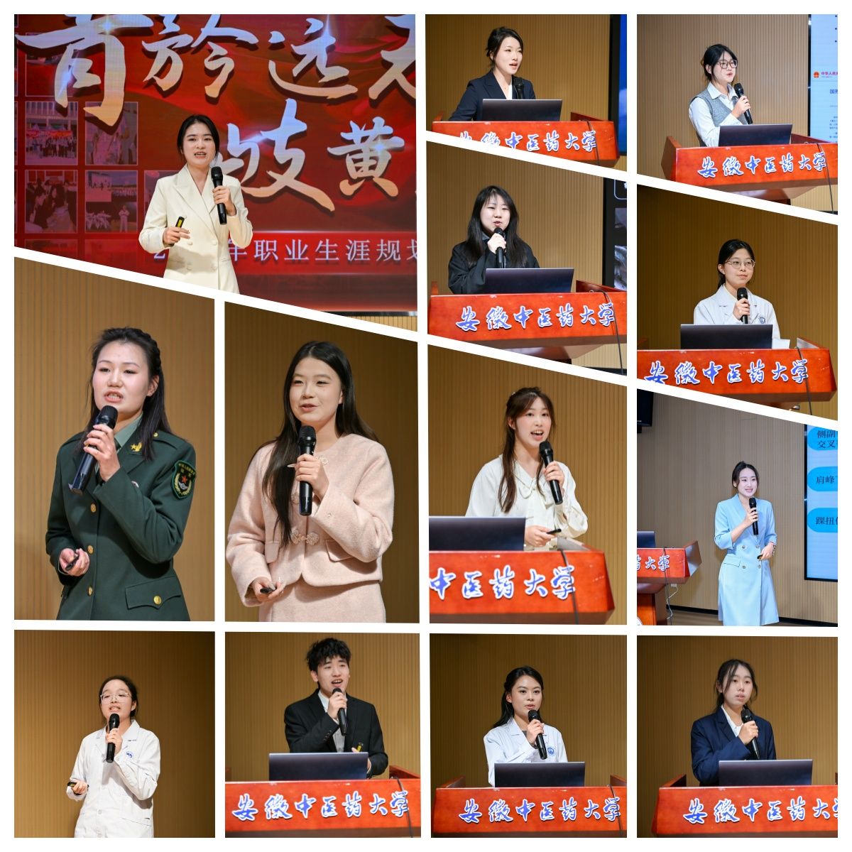 自11月大赛启动以来,全校共有5663名学生通过线上平台参与赛事,提交了职业规划书及职业人物访谈报告等作品。各学院举办班赛、院赛,最终26名选手晋级决赛,决赛阶段分为PPT现场展示与问答两个环节,选手们结合自身兴趣、性格、价值观与能力特点,围绕职业目标选择、行动方案制定与动态评估调整等维度展开系统阐述。比赛现场,选手们沉着自信、立足现实、展望未来,充分展现了我校学子良好的职业素养与精神风貌。经过激烈角逐,成长赛道:针灸推拿学院黄姗和医药信息工程学院曹秋实同学荣获一等奖;就业赛道:第一临床医学院魏一诺和护理学院华玉同学荣获一等奖。