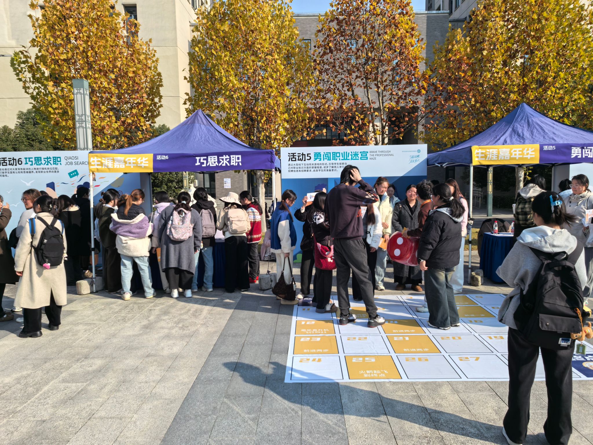 大赛期间,2025年生涯嘉年华活动同步启动,为赛事营造了更为浓厚的氛围。现场设置了多项趣味互动环节,活动共吸引了超过1000人次参与,现场气氛热烈,有效激发了同学们的生涯规划意识。