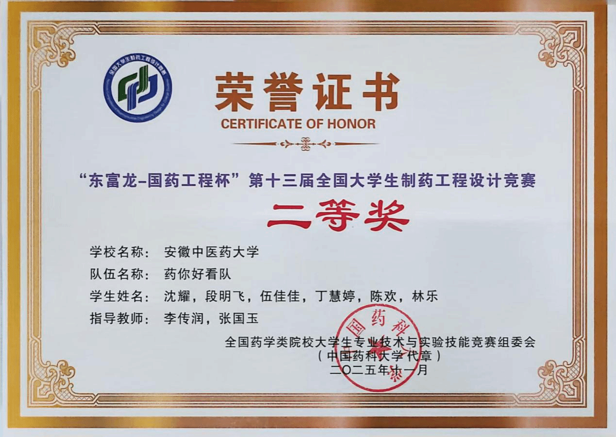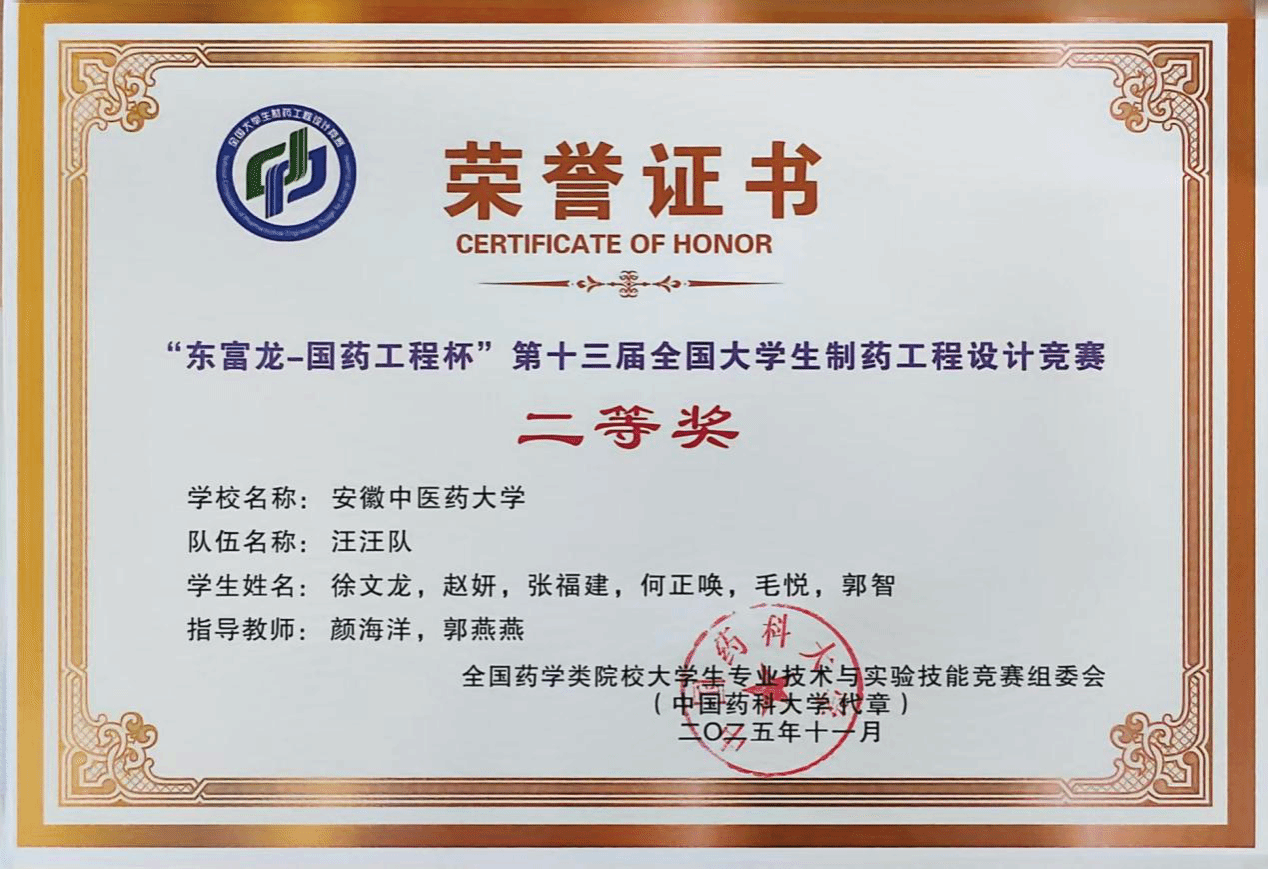 11月28日-30日,由全国药学类院校大学生专业技术与实验技能竞赛组委会主办,东富龙科技集团股份有限公司和中国医药集团联合工程有限公司协办,上海工程技术大学承办的“东富龙—国药工程杯”第十三届全国大学生制药工程设计竞赛全国总决赛在上海工程技术大学圆满落幕。我校荣获二等奖两项,三等奖一项。