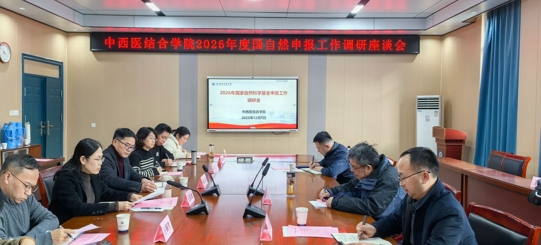 12月5日下午,学校党委常委、副校长魏骅,科技处主要负责同志一行,深入中西医结合学院,专题调研指导2026年度国家自然科学基金(以下简称“国自然”)项目申报工作。会议由学院院长王红松主持。