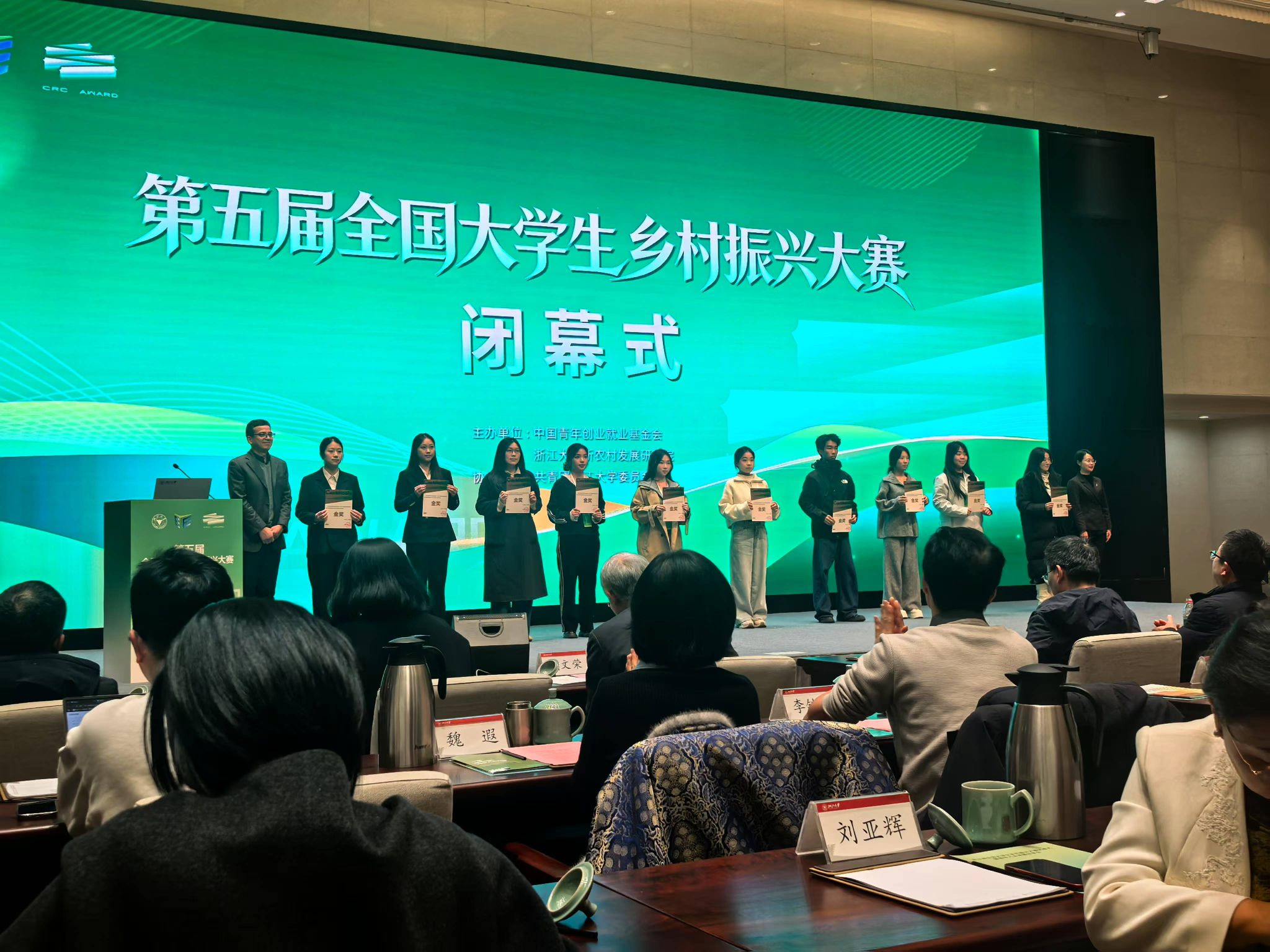 12月14-15日,第五届全国大学生乡村振兴大赛主体赛决赛及颁奖典礼在浙江大学紫金港校区隆重举行。经过激烈角逐,我校参赛项目《药愈卤鹅——“中医药+”乡村振兴的卤鹅匠人》(学生:朱文放、李桐、张永琪、宋佳丽、刘淼、王珂琪、戴亮,指导教师:张筱荣、彭青和、周政)荣获大赛金奖,并在赛后接受了大赛组委会的采访。
