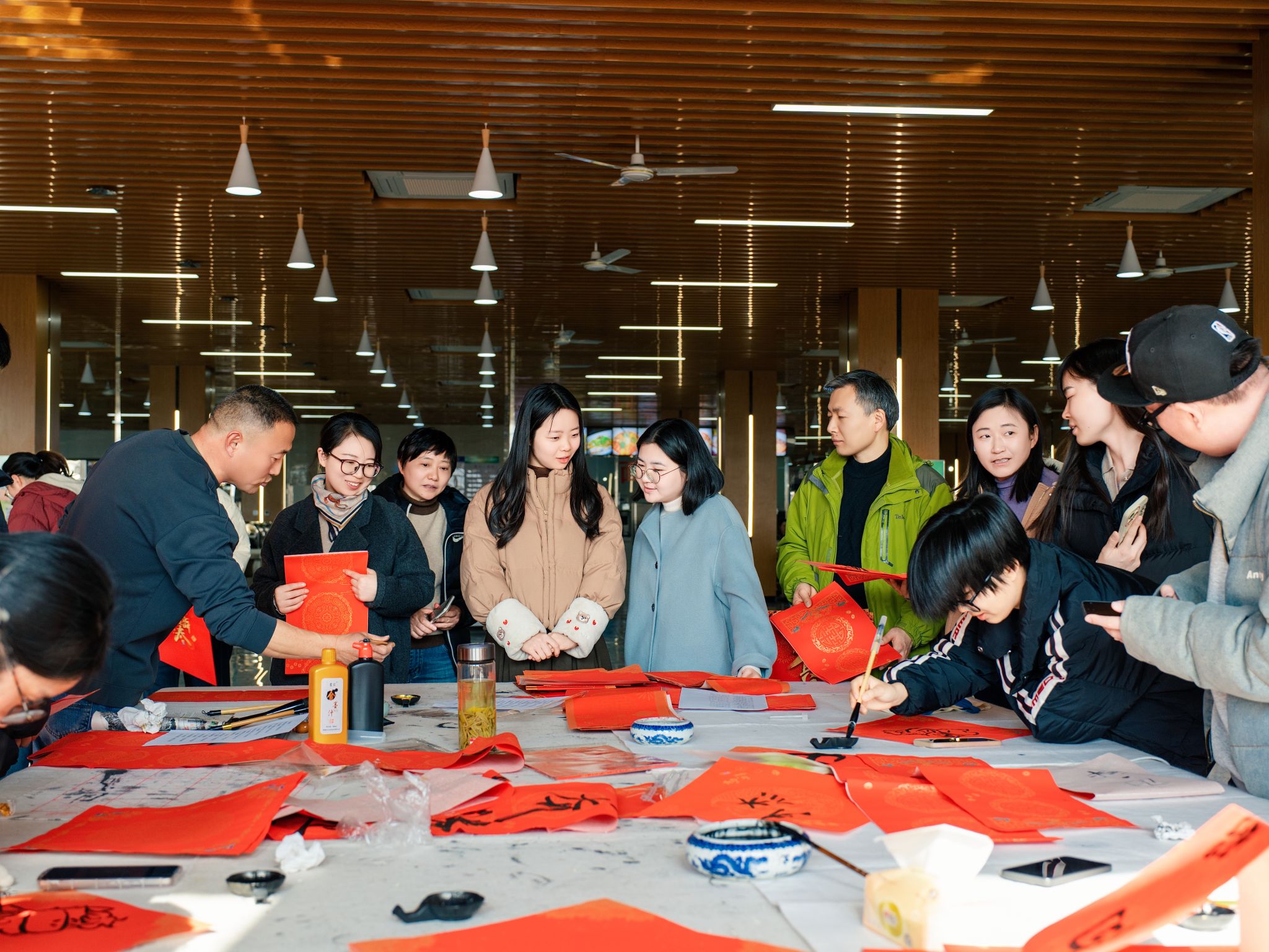 为弘扬中华优秀传统文化,深入实施学校美育浸润行动,营造喜庆祥和、积极向上的新春校园文化氛围。1月15—16日中午,由校工会、团委、人文与国际教育交流学院(外事办、港澳台办)联合主办,美育中心、教工书画协会、大学生书画协会(俱乐部)、心悟文创工作室共同承办的“书香沁马年 美育浸校园”第三届“迎新春 送春联”活动在少荃湖校区温情开展。