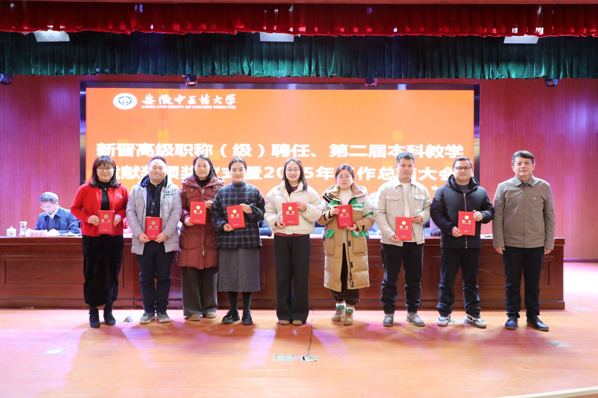 副校长魏骅、桂双英宣读了有关聘任文件和表彰文件,许钒逐一向新晋高级职称(级)人员颁发聘书,与会领导向第二届本科教学贡献奖获得者颁奖。