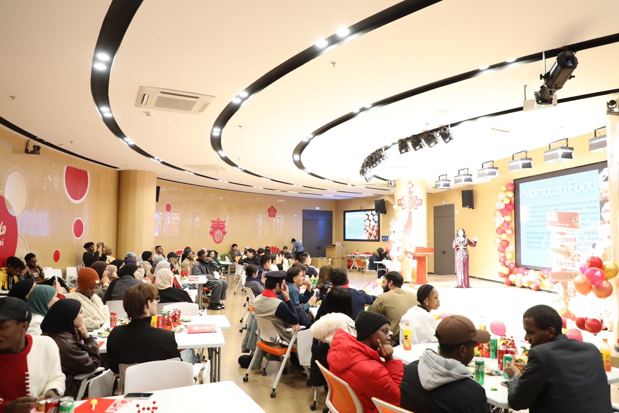 文化分享环节精彩纷呈。留学生带来了歌曲串烧,唱响中外友谊之声;华佗五禽戏刚柔并济,彰显中医药传统保健功法之美;中国习俗讲解图文并茂,传递新春之韵;摩洛哥服装秀和国情介绍,展现精彩的多元文化。互动问答气氛热烈,学生们踊跃参与,在欢声笑语中深化了文化认知。马年“福”字拓印趣味盎然,大家蘸墨、铺纸、按压,一张张承载着马年吉祥寓意的“福”字新鲜出炉,寄托着对新年的美好期许,也传递着学校的温暖。(魏子琦/文 杨争光/图 叶兰兰/审核)