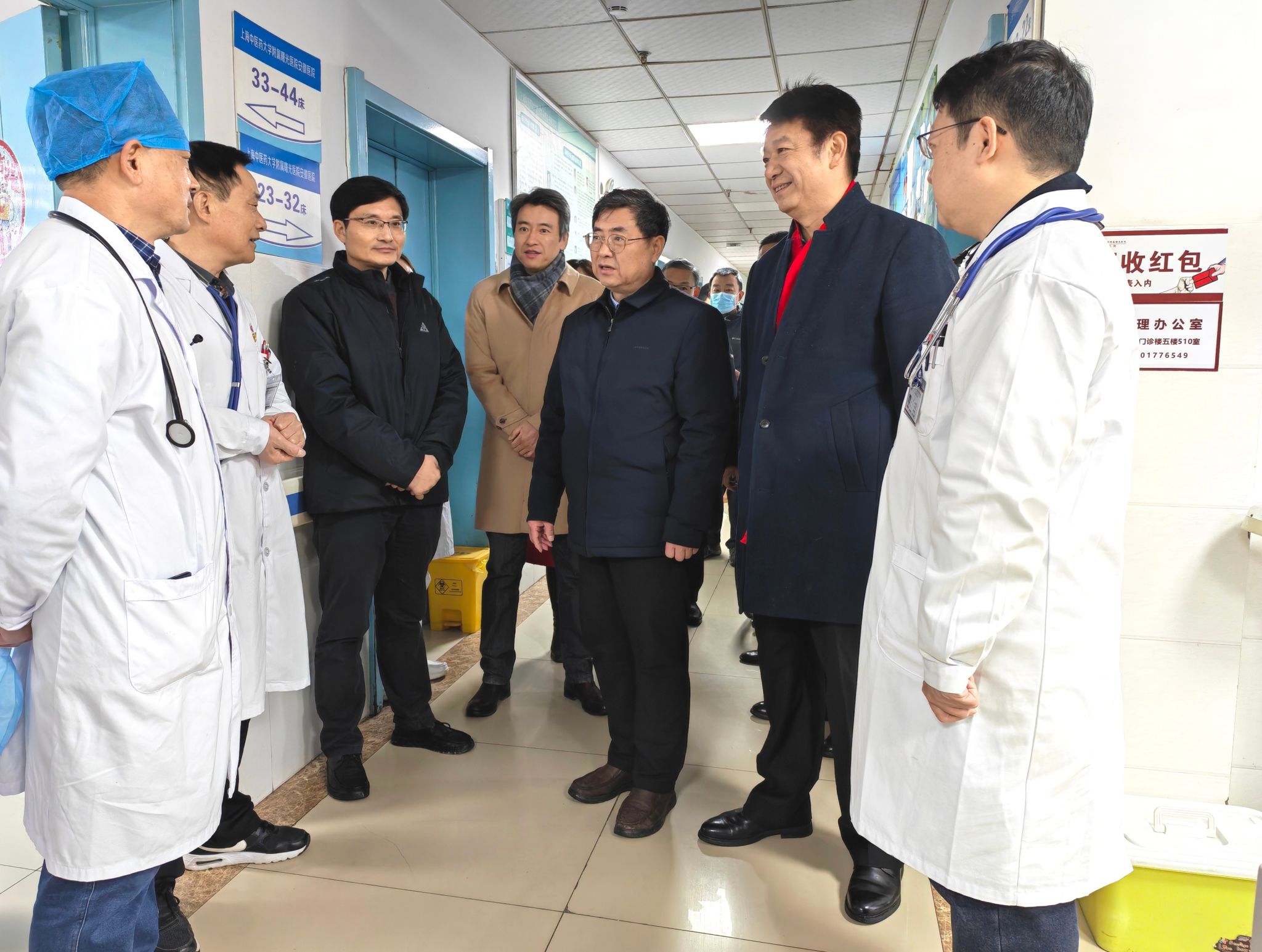 谢瑞瑾先后前往第一临床医学院、第二临床医学院、曙光医院安徽医院和神经病学研究所附属医院,深入内分泌科、甲状腺乳腺外科、神经外科、肛肠科、急诊科、骨伤科等临床一线,与在岗医务人员亲切交谈,详细了解节日期间医疗运行、患者收治和值班安排等情况,对大家恪尽职守、护佑健康的辛勤付出表示衷心感谢。