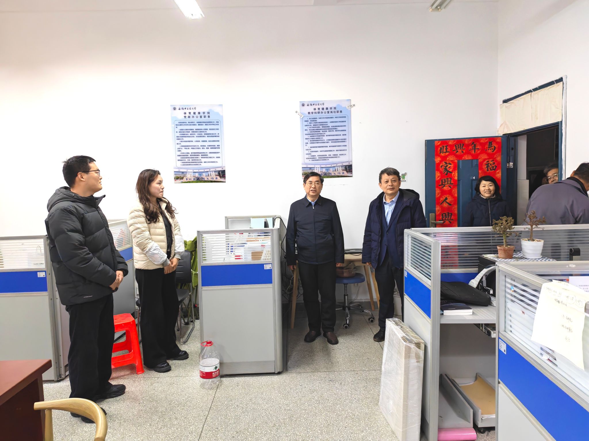 2月26日,农历正月初十,新学期序幕已然拉开。上午,校党委书记谢瑞瑾,党委副书记、校长许钒等校领导深入少荃湖校区各职能处室、二级学院等部门,走访慰问一线教职员工,检查指导开学工作。