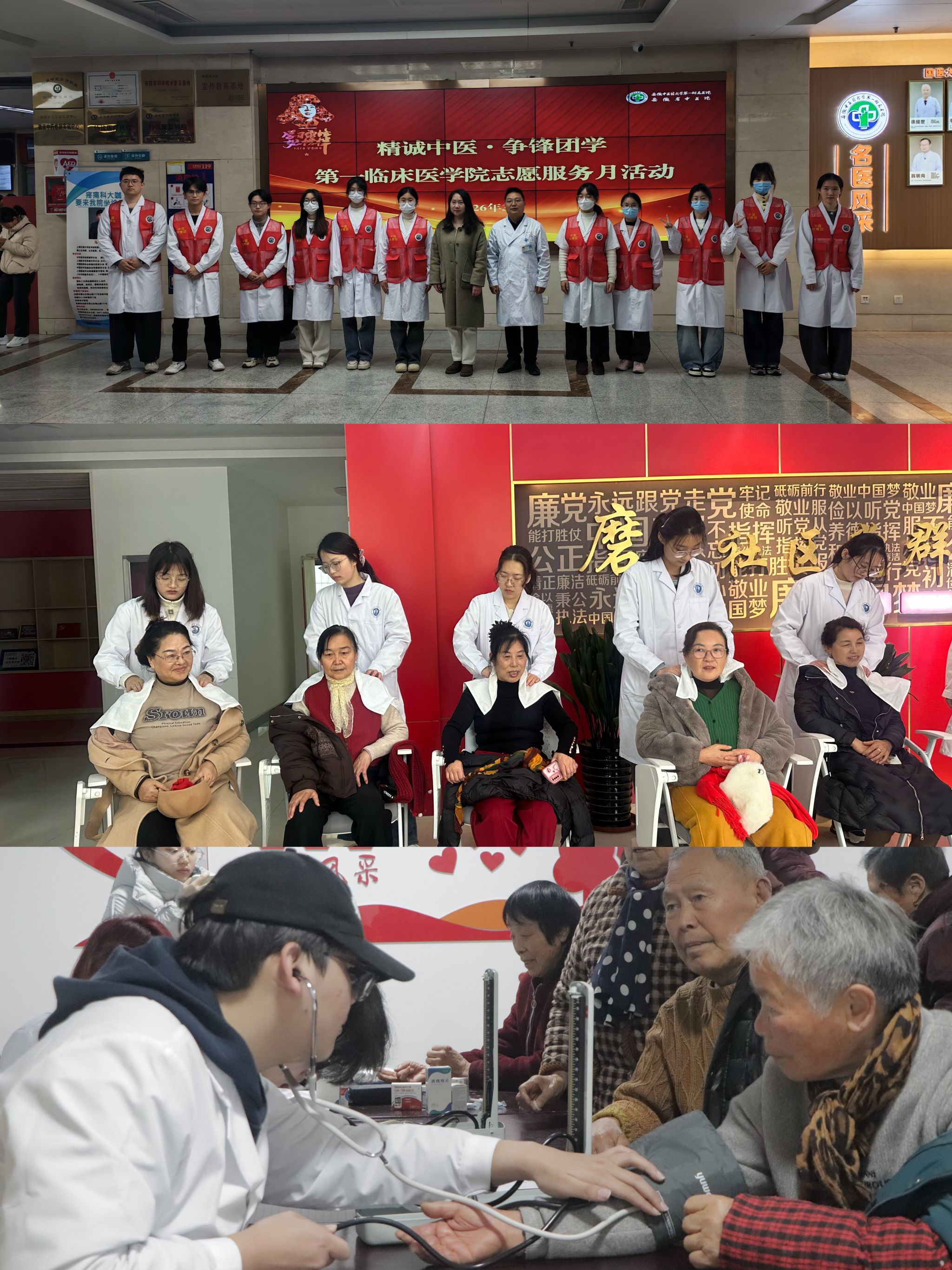 除集市活动外,针灸推拿学院、中西医结合学院、第一临床医学院的志愿者们还深入周边社区及医院,开展血压测量、健康咨询、康复指导、爱心导诊等服务,将专业医疗知识转化为服务群众的实际行动,实现了“校内+校外”服务网络的双覆盖。据统计,3月5日当天,全校累计170余名志愿者参与活动,服务师生及市民超1000人次,赢得广泛好评。