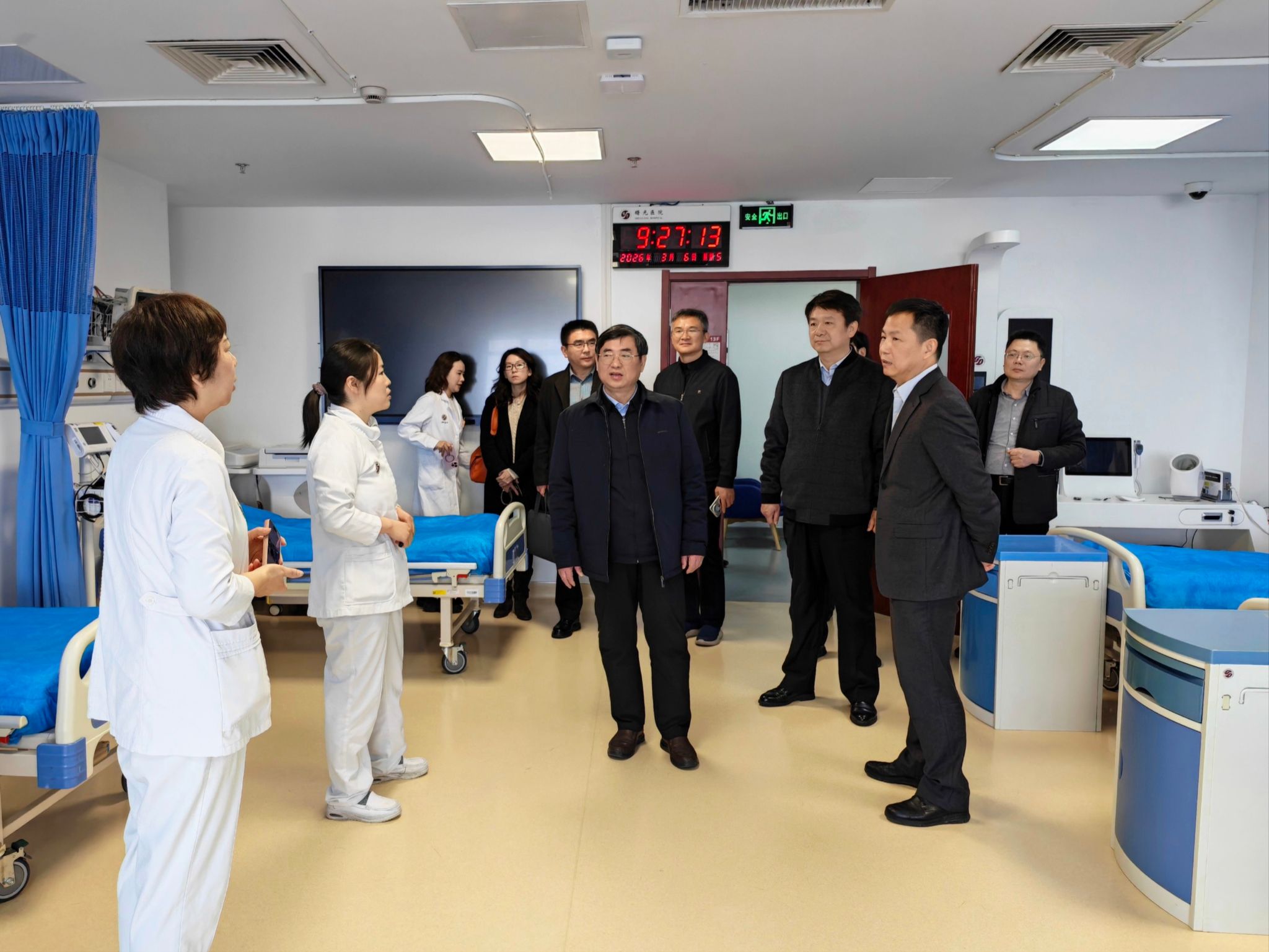 在上海中医药大学附属曙光医院期间,谢瑞瑾一行实地考察医院运营情况,与医院党委书记周强峰,党委副书记、副院长高月求等开展座谈交流,就国家区域医疗中心项目推进、资源整合、运营管理等交换意见。