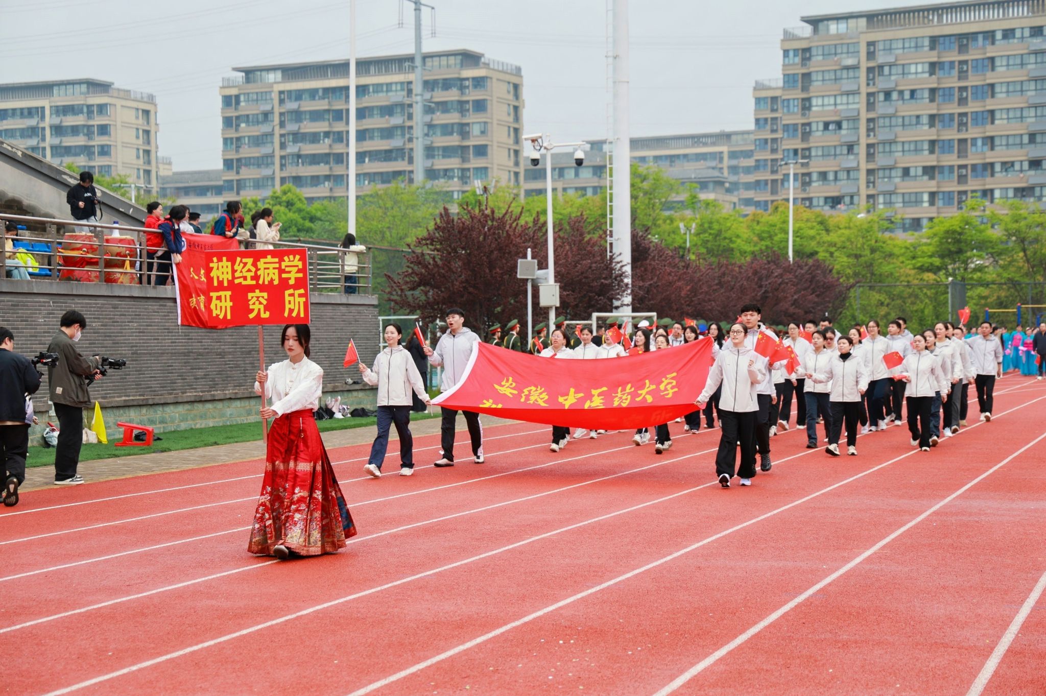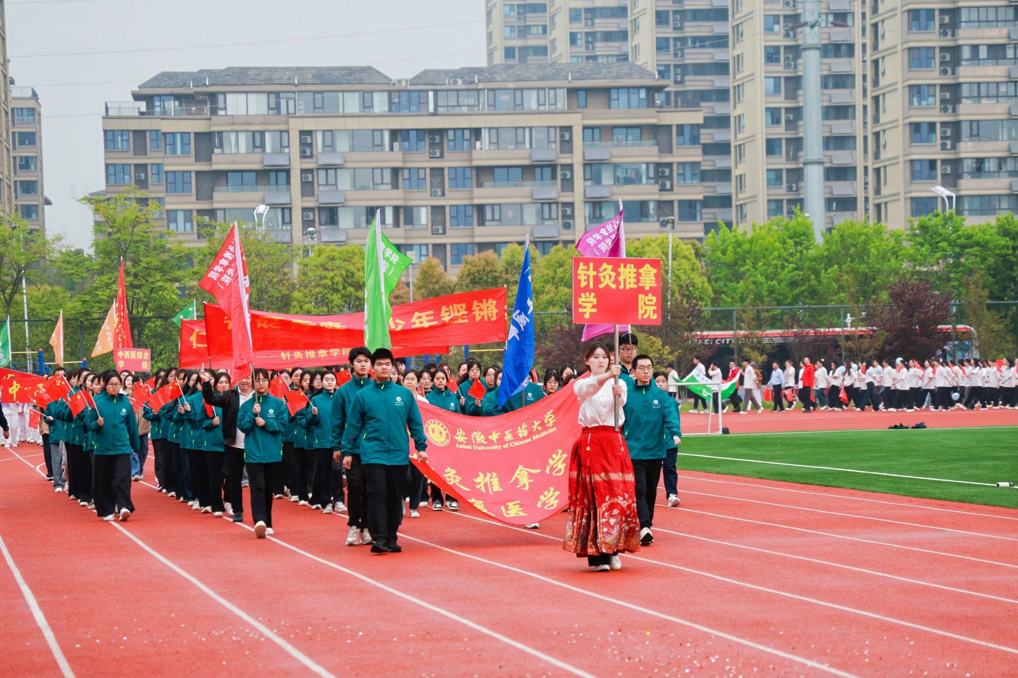 伴随着昂扬雄浑的运动员进行曲,运动员、裁判员依次入场接受全校师生检阅。他们步伐整齐铿锵、口号高亢嘹亮,精神抖擞、神采飞扬,彰显着全体安中医人朝气蓬勃、奋发有为的精神风貌。