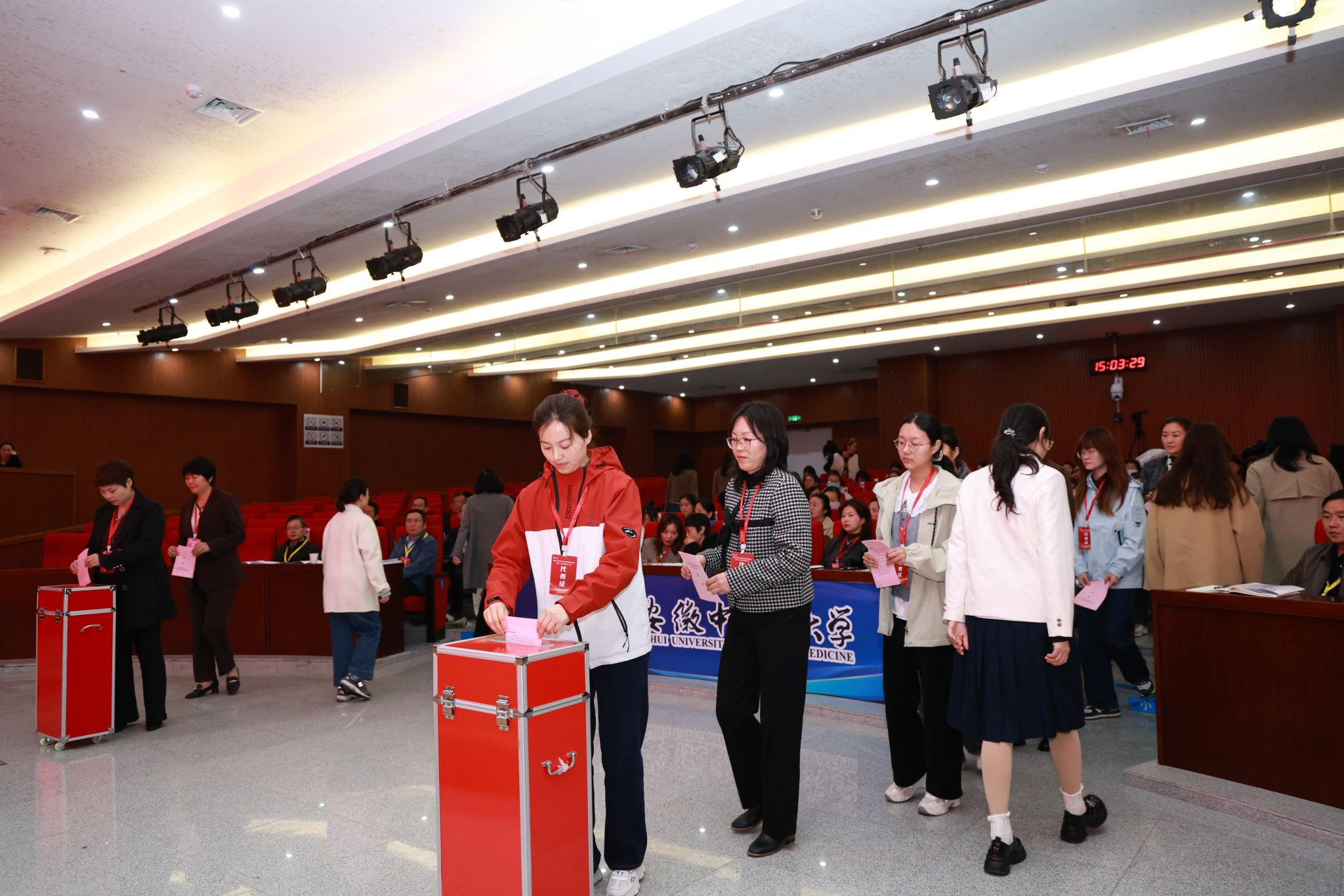 4月22日下午,安徽中医药大学妇女联合会成立暨第一次妇女代表大会在少荃湖校区召开。校党委书记谢瑞瑾出席并讲话,大会由校党委副书记周新发主持。校领导魏骅、聂久胜、詹灵杰,校党委常委董玉节、冯祥出席大会,全体妇女代表及列席代表参加会议。