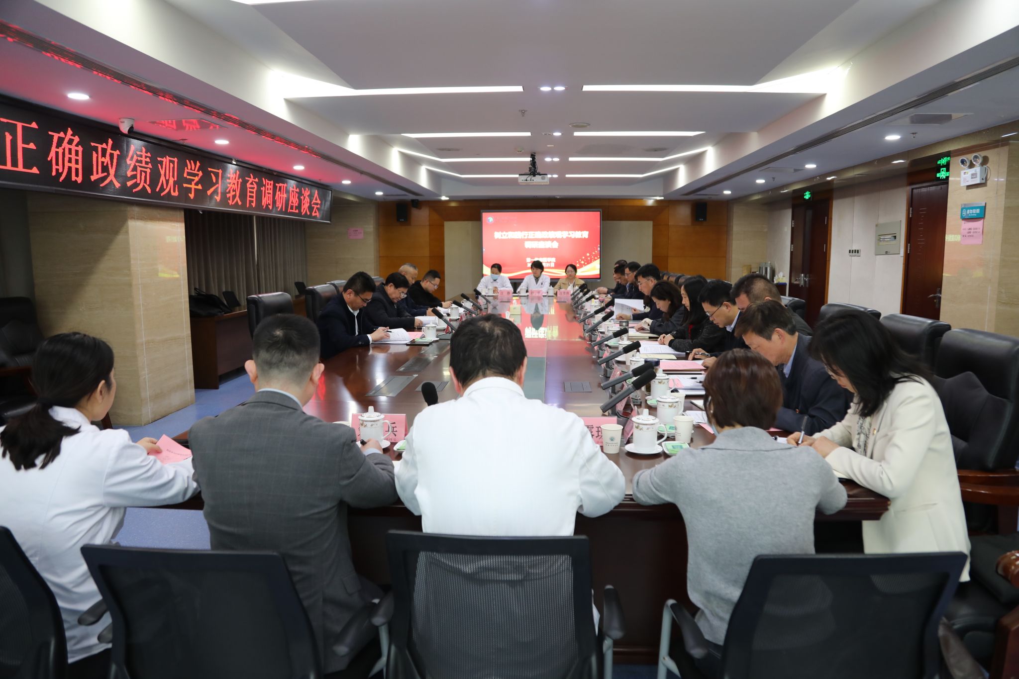 在调研座谈会上,谢瑞瑾听取了中医学院党委、一附院党委关于学习教育阶段性进展的汇报,并对学习研讨、问题查摆、整改整治等重点任务进行调度推进。他强调,一要提高政治站位,准确把握正确政绩观的核心要义与实践要求。要全面落实高校为党育人、为国育才的重要使命,始终坚守公立医院公益属性,践行“人民至上、生命至上”理念。领导班子特别是党政主要负责同志要带好头、作表率,以更高标准、更严要求抓实学习教育,以“关键少数”带动“绝大多数”。二要坚守初心使命,以正确政绩观引领高质量发展。全体党员、干部要压紧压实政治责任,紧紧围绕落实立德树人根本任务、推进中医药传承创新、强化内涵建设等中心工作,以久久为功的务实作风,把学习教育成果转化为推动事业提质增效的实际成效,努力建设特色鲜明、群众信赖、行业认可的高水平大学和附属医院。三要强化责任担当,以过硬作风推动正确政绩观落地见效。要拿出正视问题的勇气、刀刃向内的决心,把问题找准、找实、找具体,对查摆出的问题要认真分析研判,逐项制定整改措施、明确责任人和完成时限,特别要关注涉及师生切身利益的问题,查找制度机制上的漏洞短板,努力实现从解决一个问题到解决一类问题。