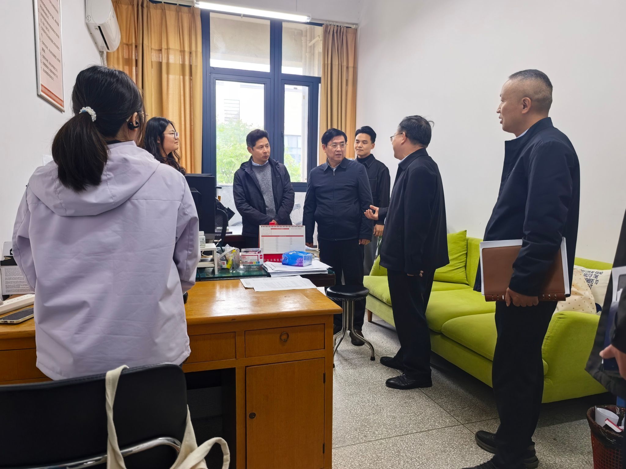 调研中,谢瑞瑾一行走访了中医学院教学办、学科与科研办,深入了解学院中医学科建设、行政科室运行等情况。在一附院综合ICU党支部、妇产生殖党支部、妇科党支部详细询问了学习教育在基层党支部落实情况,深入医院病房认真了解患者病情诊治及就医流程优化等情况,勉励医护人员继续保持昂扬的斗志,以正确政绩观引领医疗服务再上新台阶。