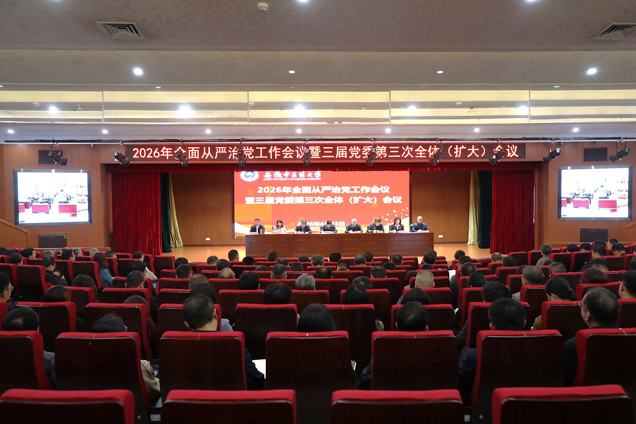 4月23日下午,学校召开2026年全面从严治党工作会议暨三届党委第三次全体(扩大)会议。校党委书记谢瑞瑾出席会议并讲话,校党委副书记周新发主持会议。在校校领导魏骅、聂久胜、桂双英、詹灵杰以及党委常委董玉节、冯祥出席会议。