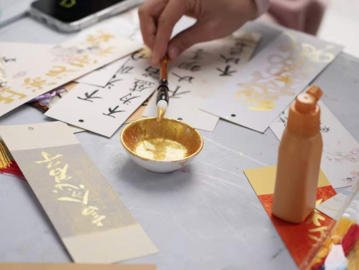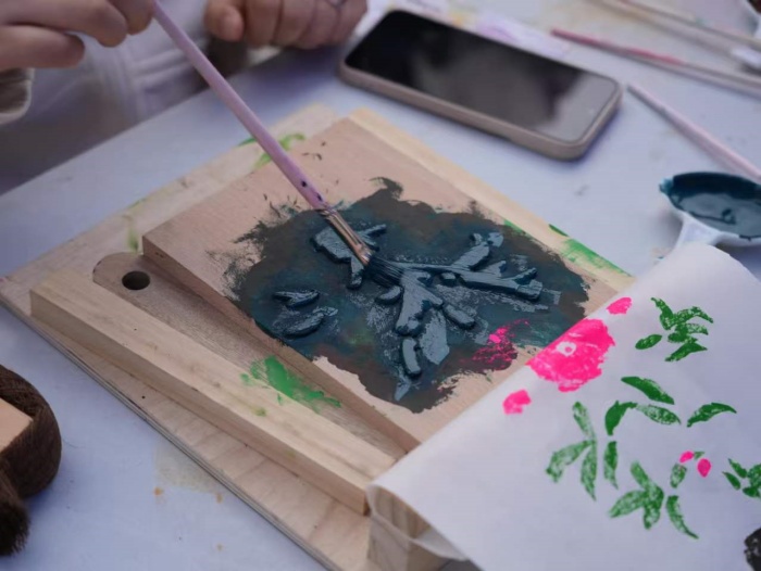 非遗体验区人气最高。漆扇制作、雕版印刷、拓印等项目前排起长队,同学们在亲手完成传统手工艺品的过程中,感受中医药文化的根脉与匠心。