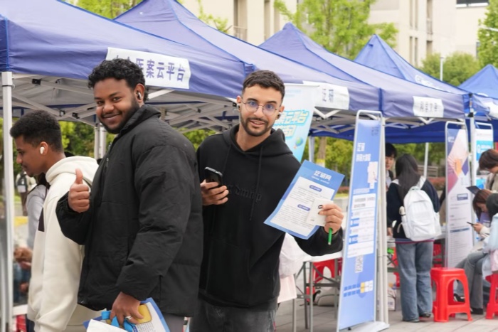 留学生也活跃在活动现场。他们或驻足雕版印刷区体验,或翻阅数据库宣传资料,在跨文化互动中感受中医药文化的独特魅力。