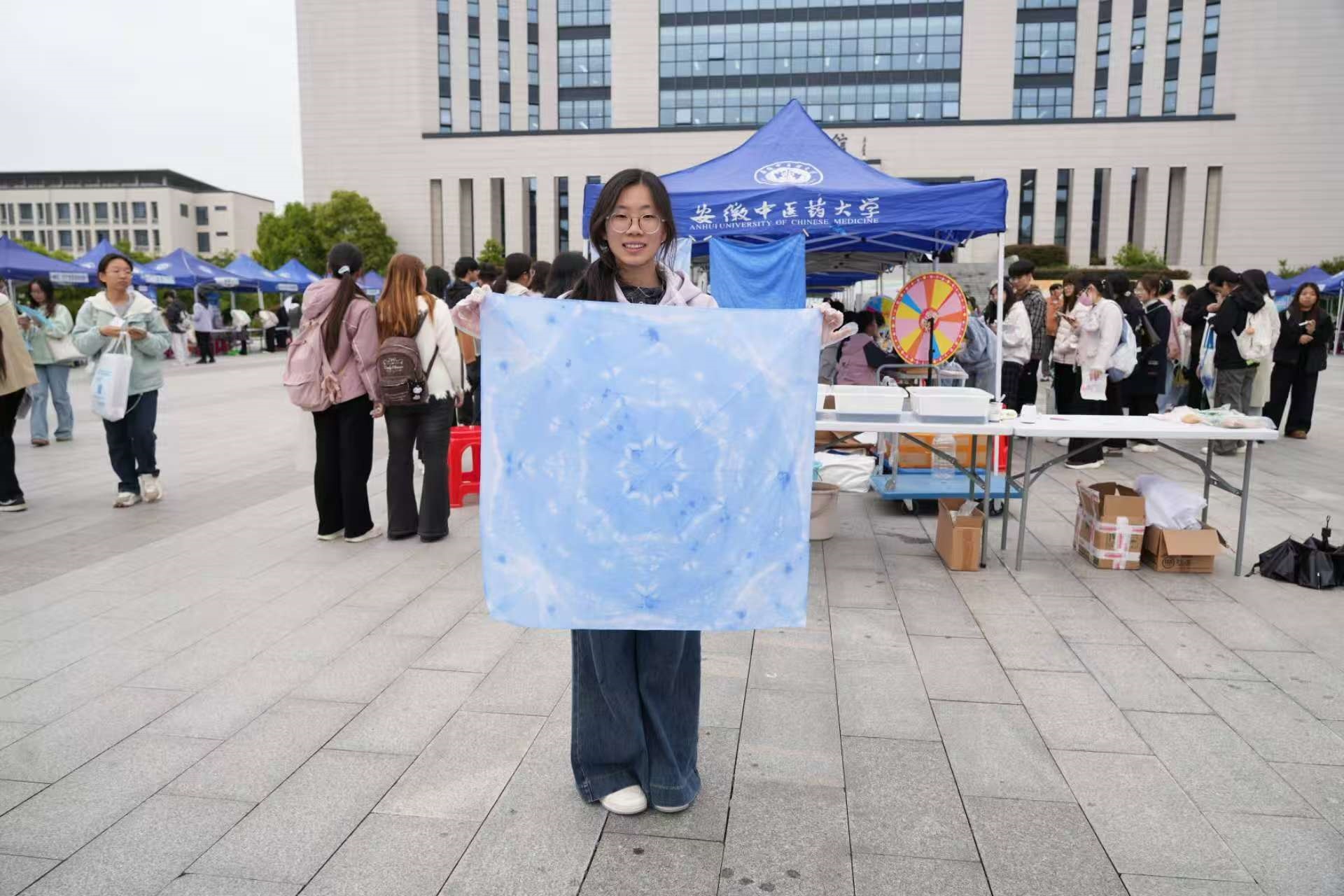集章抽奖同样热度不减。手持集章卡完成知识问答与互动游戏,集齐六枚印章即可参与抽奖,非遗扎染、图书馆定制文创产品吸引众多同学踊跃参与。