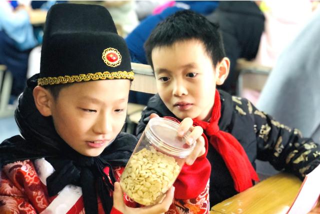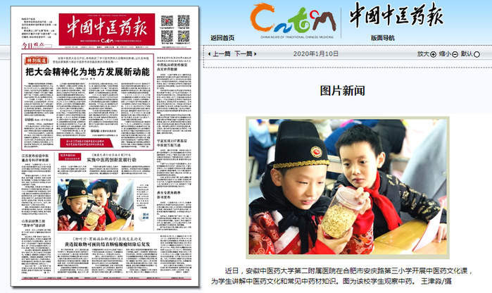 近日,安徽中医药大学第二附属医院在合肥市安庆路第三小学开展中医药文化课,为学生讲解中医药文化和常见中药材知识。图为该校学生观察中药。 王津淼/摄(来源:中国中医药报)