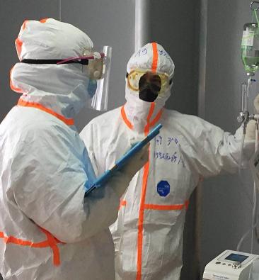 但面临的困难是空前的,缺场地、缺设备、缺人员、无院感分区,时间不等人,多耽搁一天就会失去更多的生命。何琨从协调场地、筹备抢救设备、组织安排人员、院感划分到协助防护培训,极尽所能,夜以继日,和队员们在短短的一天半内改造成具备 11 张床位的重症监护室,并于1月29日下午正式收治危重患者,瞬间满负荷运行。