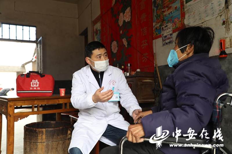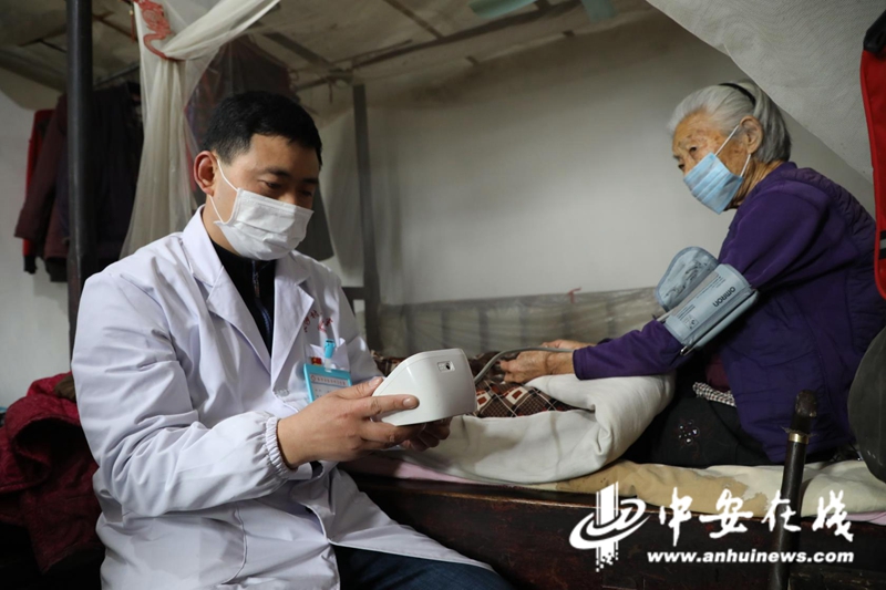 “姚奶奶,我来给您测血糖了。”汤泽俯身为90多岁卧床的姚秀英调整姿势,细心地将奶奶额前的白发捋了捋。姚秀英的儿媳王云兰说,前段时间婆婆因为心衰引起浮肿走不了路也吃不下饭,当时家人已经开了通行证准备去县城看病,但没想到汤医生诊治后,婆婆的浮肿很快消退,精神状态也好转了,家人放心许多,也不需要在疫情防控的关键时刻外出看病。