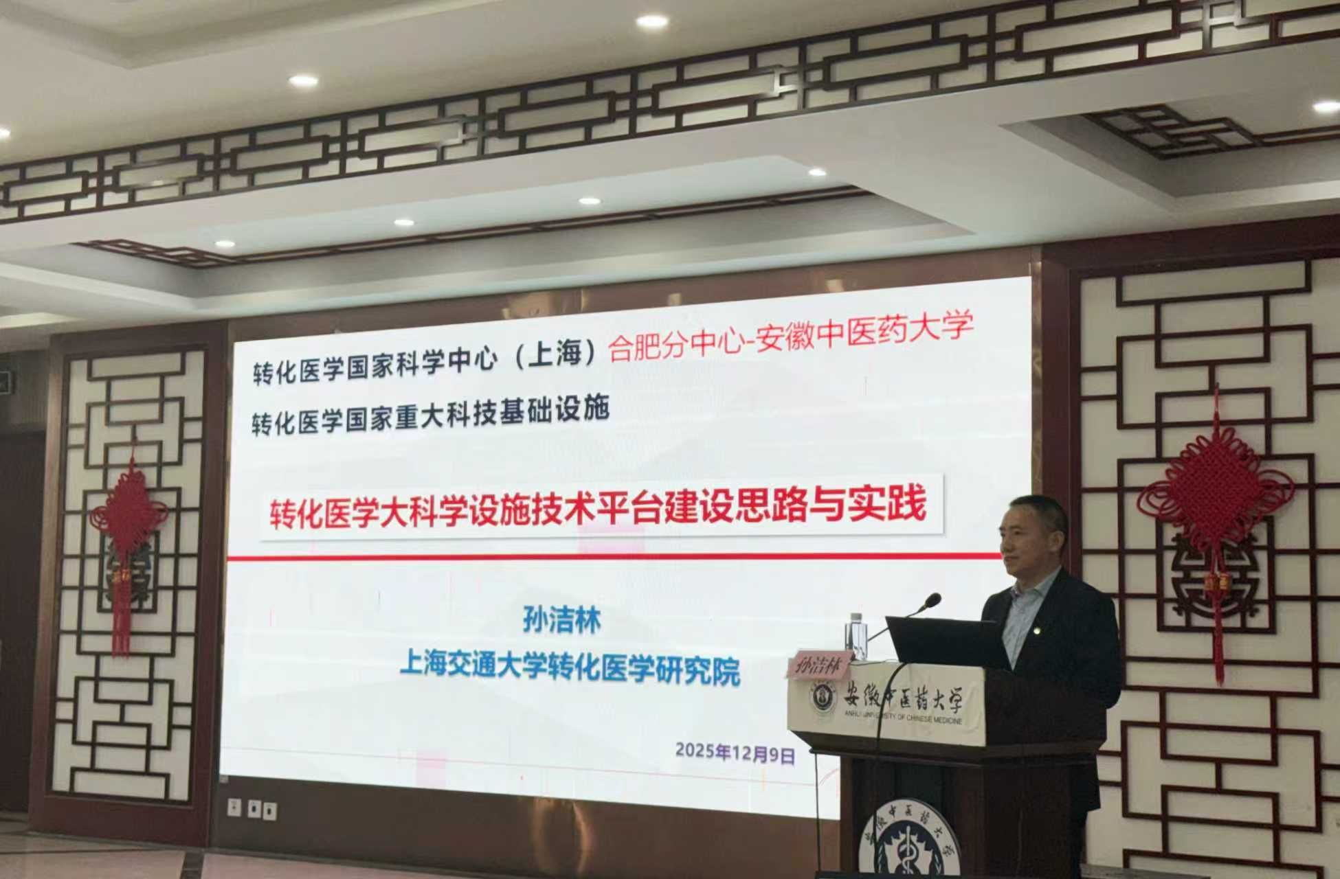 12月9日下午,上海交通大学转化医学研究院孙洁林教授在少荃湖校区药学院380会议室,为师生带来了一场题为《转化医学大科学设施技术平台建设思路与实践》的专题学术报告。报告会由国家转化医学科学中心(上海)合肥分中心、安徽中医药大学平台管理处、科技处及药学院共同主办。学校党委常委、副校长桂双英,学术副校长凌代舜出席会议,药学院执行院长韩岚主持报告会。学校各科研平台相关负责人、专业教师、研究人员及学生参会。