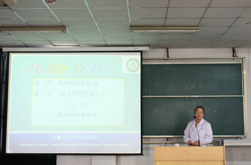 为进一步落实我校“关于开展‘教学名师、教学精英、精品课程’教学示范活动的通知”,结合药学院本学期教学观摩活动主题,11月10日,该院特举办教学示范观摩活动,该院党总支书记方成武,副院长金传山、桂双英出席,全体教职工和部分学生参加观摩。