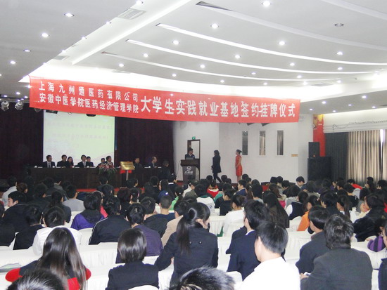 为加强学生实践教学,提高毕业生就业质量,经管学院积极开拓新的实践教学基地,建立建设毕业生就业基地。日前,该院李珑院长率相关人员分别赴上海、杭州与上海九州通医药有限公司和上海绿谷集团杭州分公司进行了深入洽谈,正式签订协作方案,将两单位确定为医药经济管理学院实践就业基地,并正式挂牌,接收学生实习与就业。 上海九州通医药有限公司是近日已成功上市的九州通医药集团股份有限公司下属的一家大型现代医药物流企业,连续6年入围“中国企业500强”,在全国医药行业都有一定影响的大型医药物流企业,对于我校相关专业的实践教学、科研以及实习就业都是很好的资源。李珑与上海九州通公司总经理戴胜辉均表示将以学生就业基地建成为契机,通过友好合作增进交流,为安徽中医学院毕业生的实习与就业提供更为广阔的平台。经过协商,该公司第一批已接收我校各相关专业近50余名毕业生实习与就业。