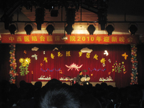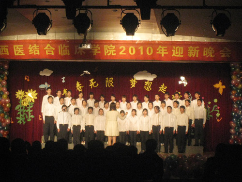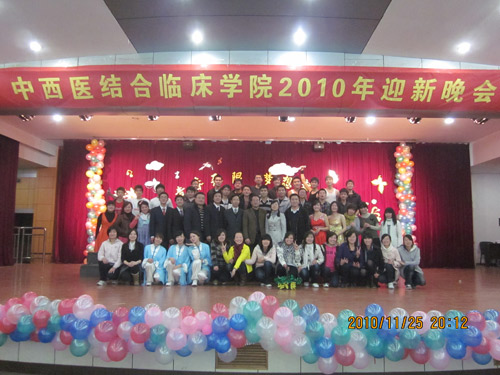 11月25日晚,中西医结合临床学院在西区多功能厅举办2010年度迎新晚会。该院党总支书记吴成长、副院长方正清、党总支副书记顾义俊、部分老师、各年级辅导员和一年级全体新生一道观看演出。