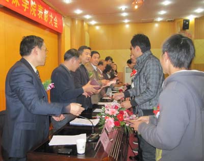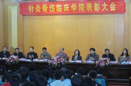 12月3日下午,针灸骨伤临床学院召开表彰大会,对“针灸经络研究50周年国际学术研讨会”先进教师代表、2009-2010学年三基知识竞赛中表现突出的班集体、学生会及各班优秀学生骨干、运动会取得优异成绩的运动员以及该院学生在其它方面取得优异成绩进行了集中表彰。