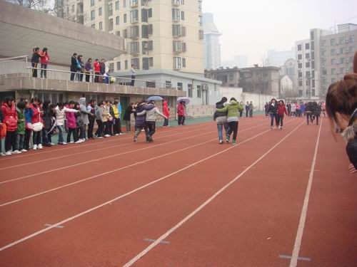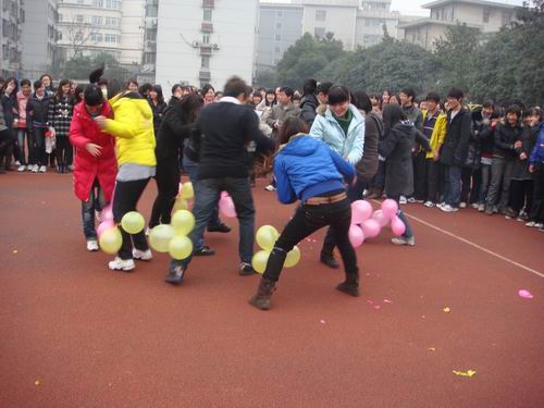 各班级纷纷组队参赛,活动现场人流涌动,气氛极为热烈。活动分为四个环节,分别是“踩气球”、“反口令”、“两人三足接力赛”和拔河比赛,女生们使尽全身解数,场面十分热闹,趣味运动会锻炼了同学们的反应力和身体之间的协调能力,也增进了班级同学的凝聚力。
