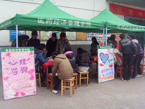 3月5日,为响应校团委号召,开展“志愿者活动月”大型系列公益活动,进行大学生志愿者服务工作,医药经济管理学院组织了一场大学生心理咨询活动。