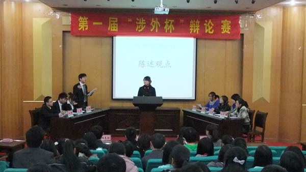 比赛分为三组,第一场09国针VS09涉外护理1班,辩题为“网络是否让人更亲近”;第二场10国针VS09涉外护理3班,辩题为“先成家还是先立业”;最后一场是10对外汉语VS09涉外护理2班的较量,辩题是“广告是否有利于大众消费”。