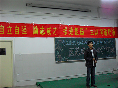为了增强同学们的爱国热情,丰富大学生活,医药经济管理学院于3月31日晚6:30在西区杏林楼501教室举办“自立自强 立志成才 报效祖国”主题演讲比赛。担任本次比赛的评委有学生处处长聂久胜、校团委书记姚强以及经管学院党总支副书记周莉。此外,各位辅导员也出席了此次大赛。
