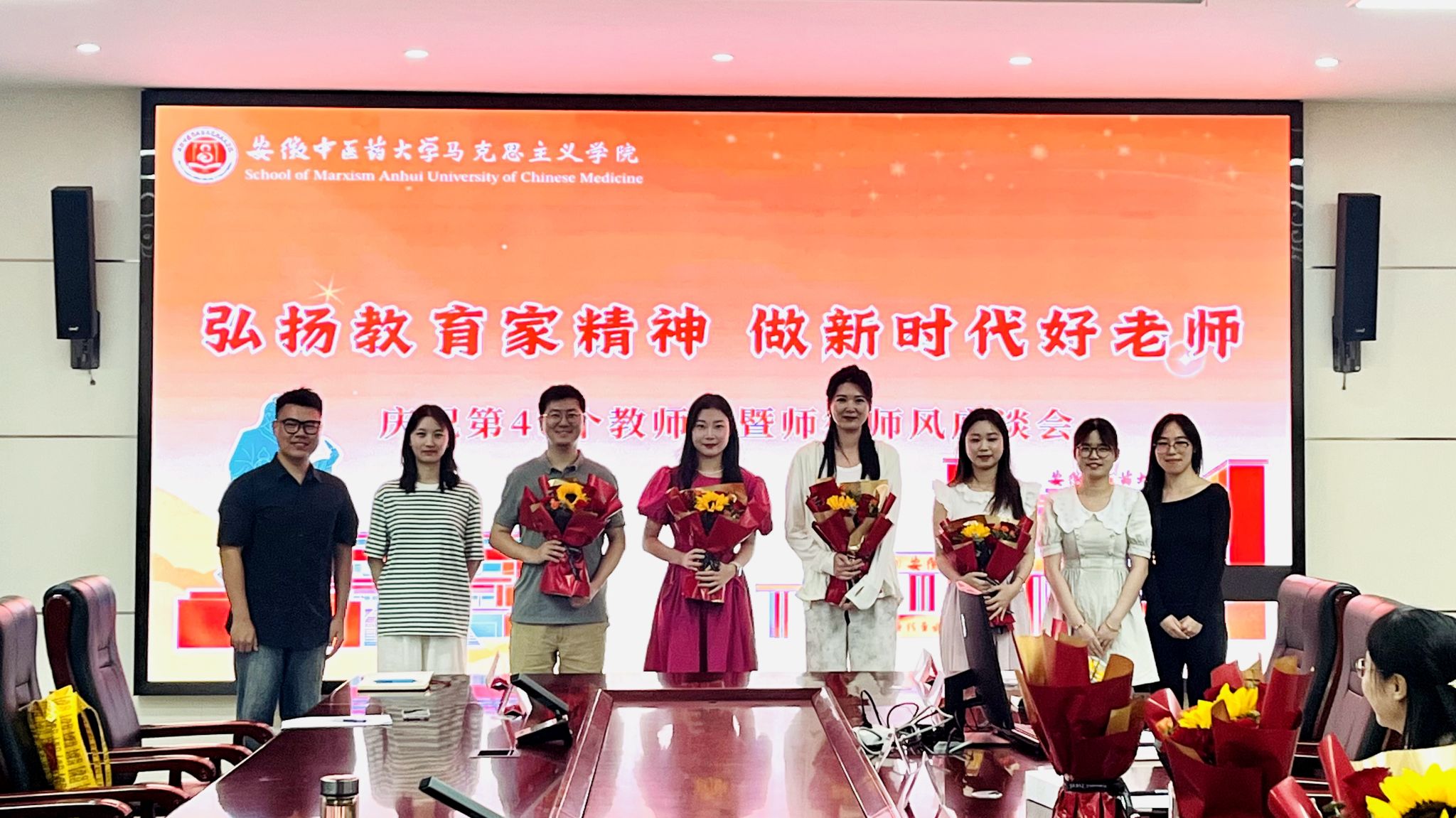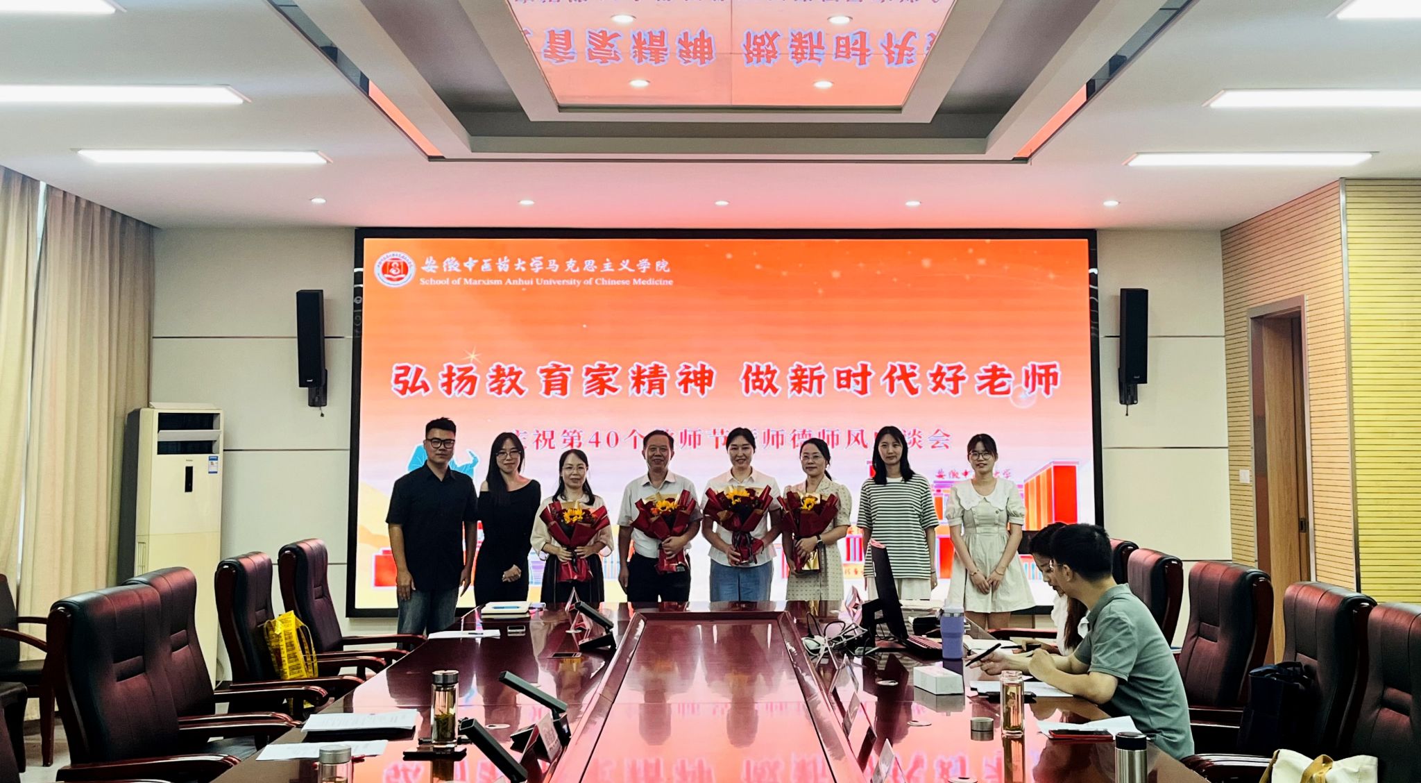 为学习贯彻习近平总书记在全国教育大会上的重要讲话精神,贯彻落实《中共中央 国务院关于弘扬教育家精神加强新时代高素质专业化教师队伍建设的意见》部署要求,9月10日,马克思主义学院召开“弘扬教育家精神 做新时代好老师”——庆祝第40个教师节暨师德师风座谈会。2024年荣休教师、新进教师,2024年省级教学比赛获奖者,2023-2024年校级青年教师教学基本功竞赛获奖者,省级以上表彰或荣誉称号获得者,学生代表和学院领导参会。学院党总支书记黄学武主持会议。